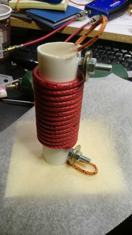 I looked up the plans an it didn't look too hard to make the traps needed, as I am lucky enough to have a miniVNA to measure the traps I was able to tune both pretty close to 7.100MHz. I had a 3.3cm/diam. plastic pipe from the rubbish bin of my local plumber, and some red hong kong coaxial cable. First attempt I made a trap "by the book" but this one was for me resonant on 9MHz, meaning it was way too short. So I started anew with a much longer coax cable and measured all the way by cutting off only a few cm at a time. When I got close to 7MHz I made holes and pulled the wires inside the pipe. Tuning this trap shorter can also be done by moving the turns of coax apart, using a match or something else non-metallic, then when your'e satisfied use hot-melt glue or something else to make it permanent, I could not see that my hot-glue had any influence on my tuning.