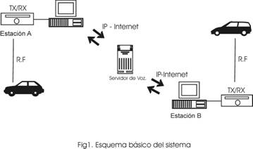 MONTAJE DE UN GATEWAY DE VOZ RF-INTERNETTras leer el artículo de EA8EE, en la Revista CQ Amateur de Mayo de 2002 sobre los enlaces de radio vía IP, quede sorprendido de las posibilidades que ofrece el sistema. Después de descargar los programas y probarlos detenidamente se me ocurrió montar mi propio gateway LU1XAK-R experimental. En el siguiente artículo se describe como poner en marcha un enlace internacional aprovechando las ventajas de Internet y la radioafición. Introducción al sistema: El uso de pasarelas de voz enlazadas a frecuencias en simplex o repetidores de radioaficionado abre una nueva puerta a la experimentación Desde dar algo de vida a un repetidor sin apenas uso, a proporcionar a las estaciones con licencia restringida la posibilidad de llegar un poco más lejos de lo habitual o incluso mejorar las comunicaciones en una situación de emergencia. Las posibilidades son tantas como se le ocurran a cada uno. Básicamente una pasarela de este tipo funciona tomando la señal de radio en el punto A (en VHF por ejemplo), esta señal es comprimida según el estándar GSM en el ordenador que ejerce de pasarela y transmitida vía Internet utilizando el protocolo TCP/IP a través de un servidor específico hasta el punto B, donde la estación pasarela invertirá el proceso y pondrá en el aire la señal recibida en A (fig.1). Lo interesante de este sistema es que funciona en ambos sentidos, de este modo se podría establecer un contacto entre los puntos A y B independientemente de la distancia, condiciones de propagación etc. El concepto no es nada nuevo, ya que aplicaciones como MSN, NetMeeting o PalTalk proporcionan el mismo servicio. De hecho es posible establecer contactos sin recurrir a una pasarela RF-Internet utilizando los canales disponibles. La diferencia está en que este enlace es de uso exclusivo para radioaficionados y por sus características presenta ciertas ventajas sobre los anteriores.