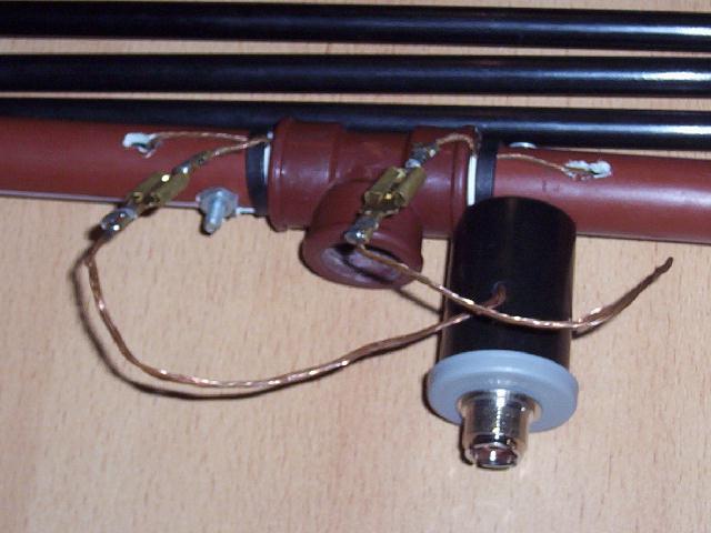 Dipolo desarmado - Centro del Dipolo Si tomamos la mitad del dipolo, este tiene una longitud rígida de 1,60 mts., a esto le tendríamos que agregar los 0,70 mts. de la antena telescópica cuando esta totalmente abierta, y tener en cuenta los 0,38 mts. de alambre que forman un "aro" antes de la conexión de la bobina. La longitud del extremo telescopico depende de la banda a utilizar.