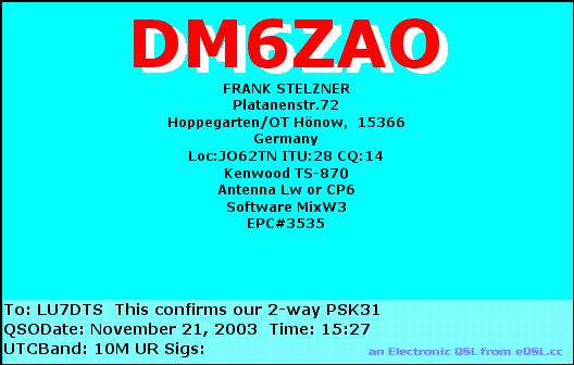 DM6ZAO 20031121 1527 10M PSK31
