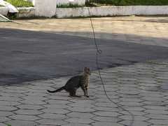 El resto de la tarde transcurrió sin mayores problemas, acompañados por los gatos del lugar y los gorriones acostumbrados a la tranquilidad de los sábados y acercándose por las migas que les tirábamos. Los Gatos. menos interesados por las migas... se acercaban a los gorriones. |