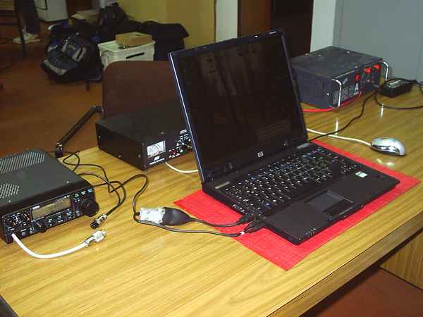Seríamos de la partida Fabián LU5AB, Graciela LU8DIR, Juan Carlos LW3DJC, Cristina LW5ECM , Gustavo LU9BAT y Daniel LU9DPD, sumándose en el lugar otros amigos. Habiendo tenido algunos problemas con la computadora destinada a los modos digitales en la anterior actividad, decidimos llevar la Notebook con todos su cables ya probados y el Alinco DX70 para dichos modos. Por otro lado, preparamos los Kenwood TS 430 y 440 para fonía y un par de fuentes. Los equipos para VHF, los sacaríamos de nuestros vehículos, utilizando en esta oportunidad el Kenwood TM 241 y el Yaesu FT 90. Aún sabiendo de la existencia de antenas de todo tipo instaladas en el lugar, llevamos nuestros dipolos, que no fué necesario instalar; y con respecto a VHF, sólo fué necesario colocar una base magnética en el marco de la ventana, con un irradiante de 5/8 con bobina. |