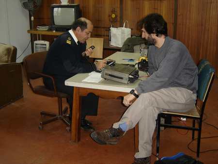 | El Suboficial Oscar Quiroga, quien como anticipamos es integrante del personal del taller de Electrónica, estuvo desde la primera hora dispuesto a ayudarnos y facilitarnos en todo lo que necesitábamos, no se limitó a observarnos en la actividad, sino que también solicitó operar, dado que posee licencia de Radioaficionado ( LW9EZQ ). Una voz no conocida fue escuchada entonces llamando como LU7EO/A, sorprendiendo a muchos de los habituales corresponsales de nuestras actividades que conocen a cada uno de los integrantes de nuestras salidas. | ||