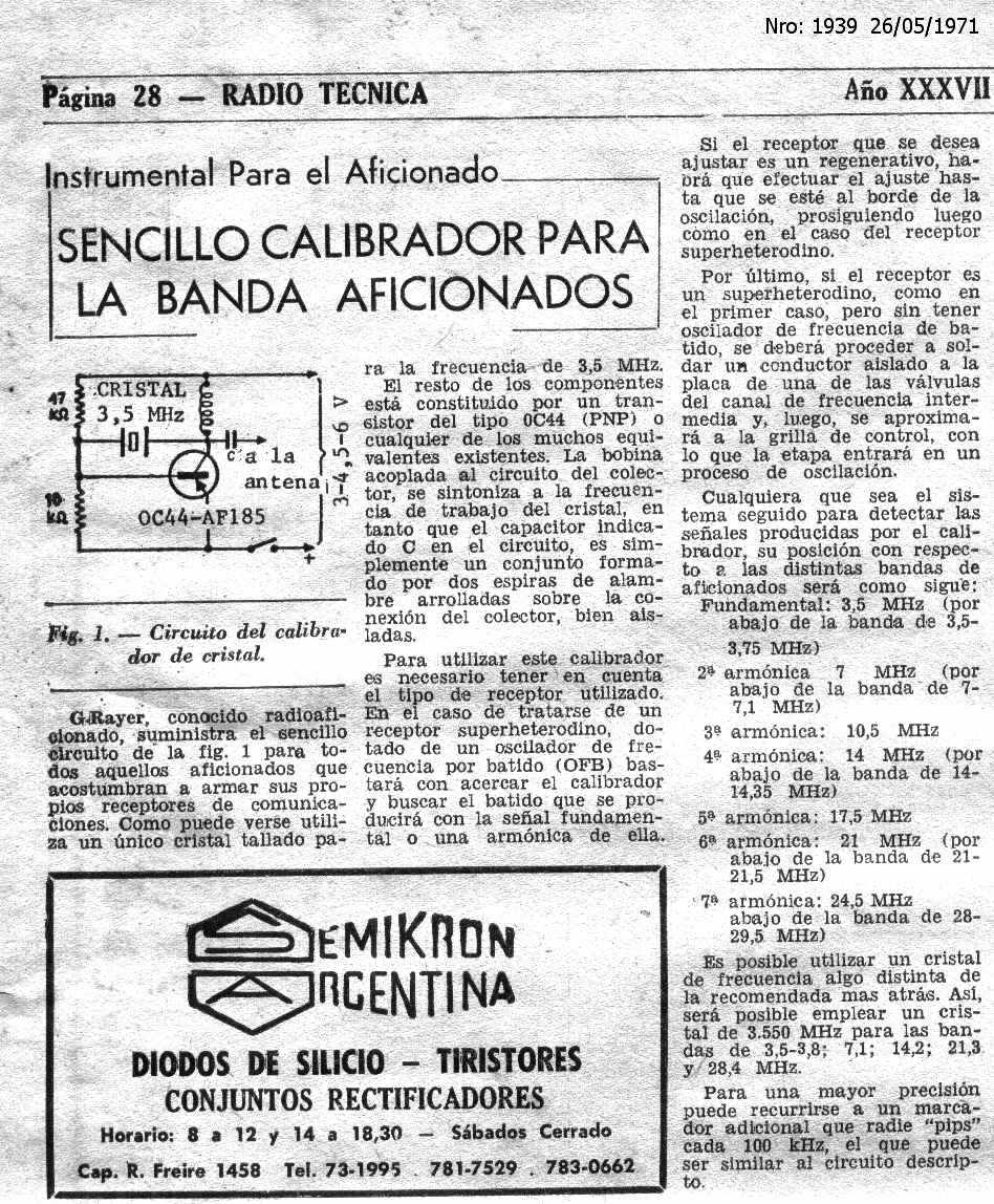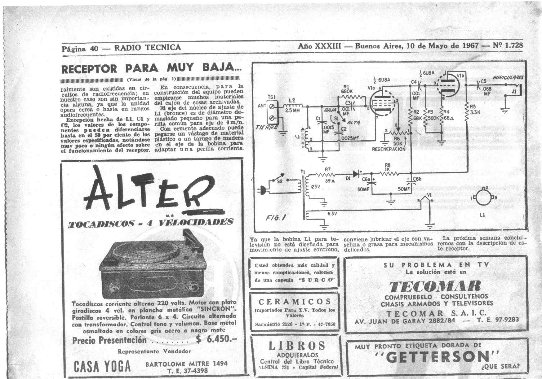 Nota : "Cómo hacerse un buen LU" por Edgar B. Mauson, Radio Técnica Número 1739 del 26 de Julio de 1967.