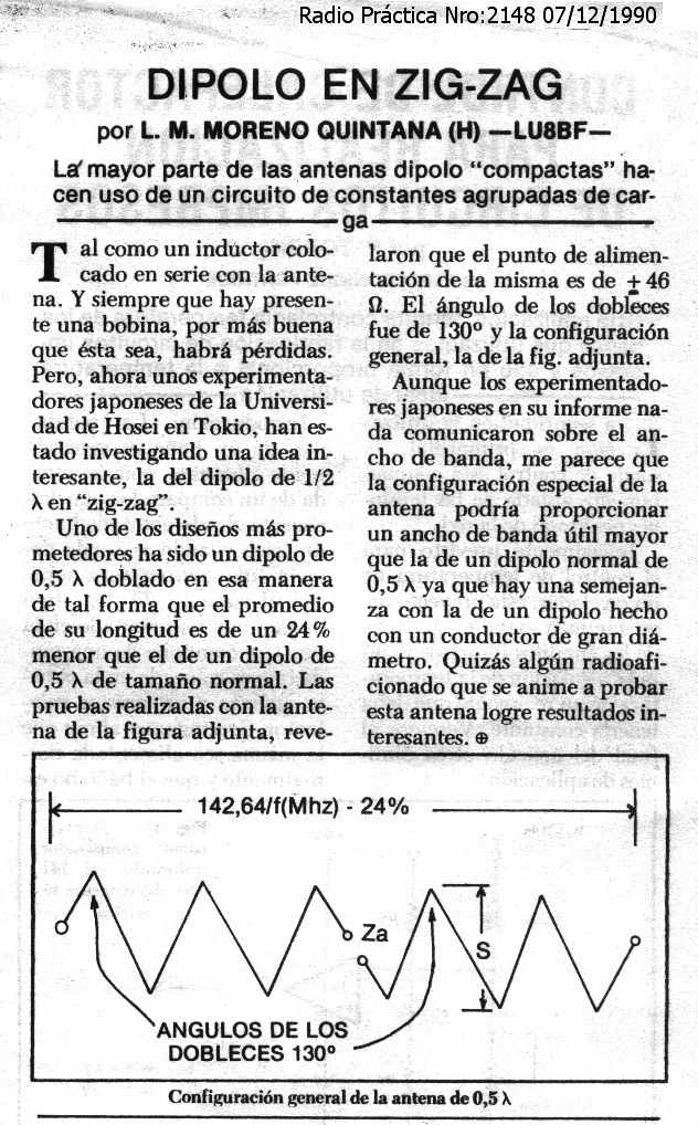 Nota : "Antena dipolo resonante en toda la banda utilizada" por Diego di Núbila LU1GA. Número 1749 del 4 de Octubre de 1967.