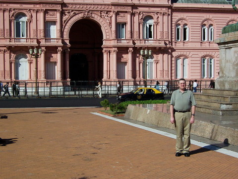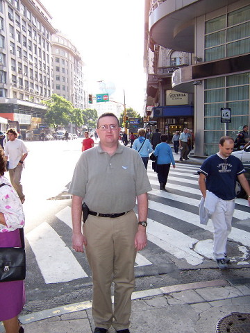 Fuimos caminando por la peatonal Florida mirando los bancos y el observaba los edificios antiguos ya que en Phoenix al ser una ciudad relativamente moderna no tiene este tipo de construcciones, también le llamaba la atención la cantidad de gente que transitaba por dicha peatonal. Al llegar a Diagonal Norte nos dirigimos hacia, Plaza de Mayo, donde pudo ver La Catedral, Casa Rosada, El Cabildo, la Pirámide de Mayo y comprar una bandera Argentina para su estacion. Luego fuimos caminando por Diagonal Norte hasta la Av. 9 de Julio cruzándola hasta llegar a la plaza Lavalle donde le mostré el palacio de Justicia, el colegio Julio A. Roca y el Teatro Colon, de ahí fuimos a caminar por Av. Corrientes viendo los teatros, cines y comercios donde en uno de ellos paramos a comprar estampillas postales para facilitar el trabajo de Pat como QSL Manager, también anteriormente fuimos a una casa de numismática donde compro algunas monedas argentinas para su colección.