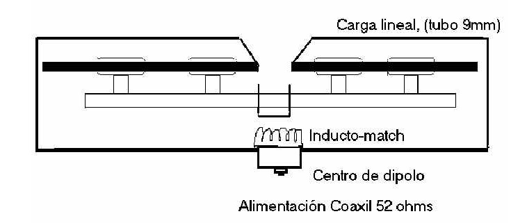 Una vez montadas ambas cargas lineales, se deberán aplanar las puntas de los trombones y hacer agujeros de 3 mm, uno de los extremos de fijará por medio de un tornillo con tuerca niquelada y arandela al extremo de irradiante, el otro extremo del trombón se fijará a uno de los extremos de un centro de dipolo, el agujero del centro de dipolo que tiene el tornillo prisionero se empleará para sujetar la bobina del "inducto-match".