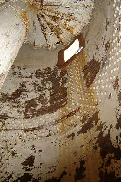 Impresionantes imágenes sacadas desde una abertura superior del faro, donde se pueden ver detalles de la estructura |