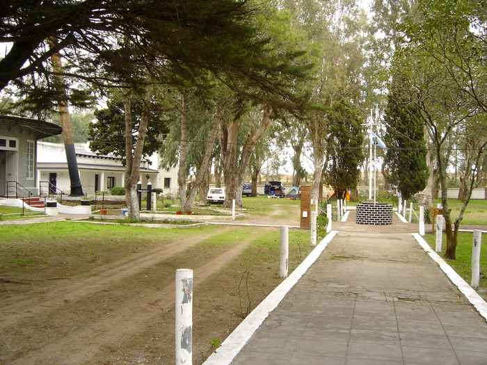 Entrada al predio, con los carteles identificatorios de la armada Argentina y el Servicio de Hidrografía Naval |