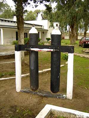 Edificio destinado a depósito y vivienda del personal estable del Faro. Antiguos tubos de acetileno usados para accionar el destellador del faro. |