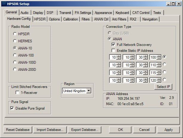 Setting up the Anan-10 was not totally a new experience as there are similarities to that of the Flexradio, but there are differences that took me a little while to figure out. I had to get to grips with - the virtual com ports, setting the audio, getting VAC to work along with CW Skimmer. Here follows some screen shots with my settings and notes which you may find helpful.