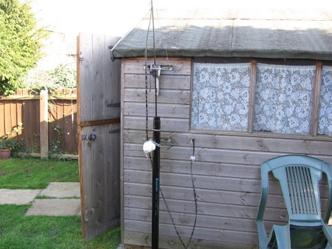 You can see a 50ft run of RG213 leaving my old shack and traveling along the house wall, which eventually enters my shed. It is then terminated into a 1:1 coax choke balun. (The SGC tuner you can see on the wall is sometimes used when I use my push-up dipole, when this is the case I don't use the choke balun.)