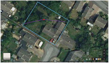 Where you live affects what antenna you can have. My previous QTH had a small back garden and virtually no from garden and was surrounded by houses all in very close proximity. My current QTH - whilst still residential is blessed by having a decent sized garden with relative privacy - although I am still unable to have any tower or similar structure. My first QTH taught me loads about antennas - what makes them effective and what must be done when using compromise solutions. Below is the plan view of my old QTH, you can see the 135ft doublet squeezed into a small space! Scroll down the page for more recent updates.