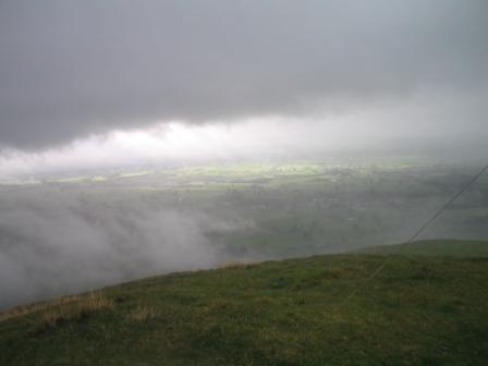 In the morning, we set off on foot from the hostel and retraced our Pennine Way route from weeks earlier, heading left and to the north of Dufton Pike. Soon into the walk, we heard Myke G6DDQ/P calling from the summit of Cross Fell G/NP-001. This was impressive, given that he had left the hostel at a similar time to us; we had the bulk of Dufton Pike still towering above us! We had noticed a possibly easier way onto the hill from this side and were keen to investigate. In actual fact, this was not the case, as the route was just as steep, but longer and more time consuming. Nonetheless, we topped the hill and set up, despite the increasingly wet conditions. Some low cloud swirling below the summit in the wind had Jimmy and Liam excited at the prospect of a cloud inversion, but the thick grey cloud above put paid to that!