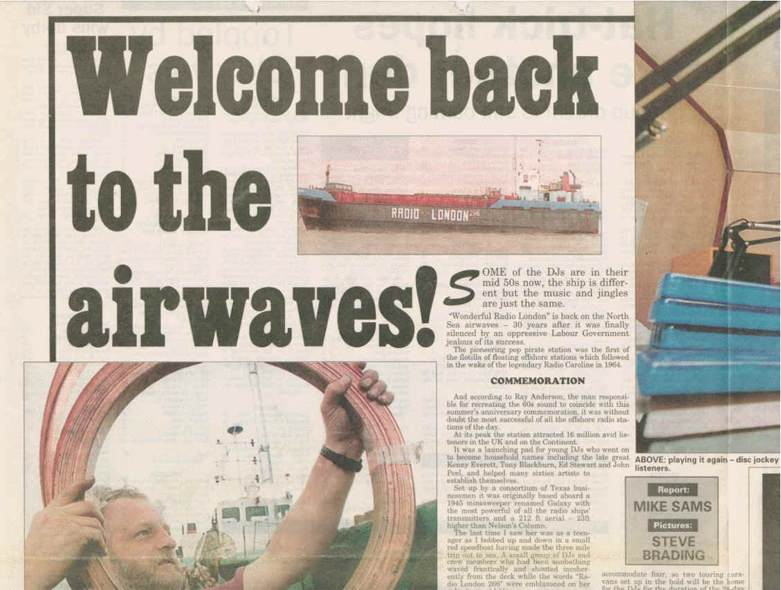 In the summer of 1997, our second son Liam was born, and my wife Marianne suggested that I should take our eldest son Jimmy, then 4 years old, camping for a few days at the start of the school holidays. As I had been reading in the British DX Clubs monthly journal Communication about the forthcoming Radio London revival RSL, I instantly agreed with my beloveds brainwave and informed Jimmy of our camping trip to Essex!