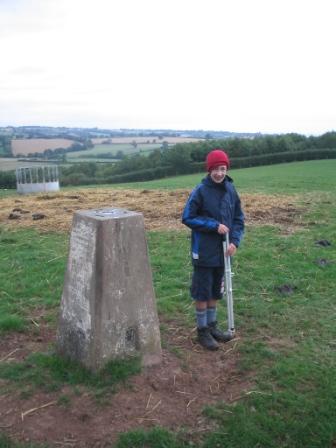 We left Leominster Youth Hostel bright and early on the morning of Thursday 31st August 2006. Again, the order of the day was to activate as many SOTA summits as possible, with a potential six available on the line we would take. We drove away from Leominster on the A44 towards Bromyard, but soon turned off onto the minor roads to aim for Hegdon Hill via Risbury. This was a summit we had visited last year, but we had simply set up by the gate at the side of the road, without entering the field containing the summit trig. This time, we took the opportunity to climb over the gate and visit the triangulation column properly. This position offered a favourable north-facing take-off point, and we set up the gear accordingly.