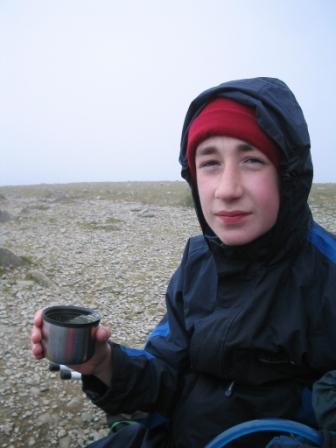 main path and enjoyed the spectacular views over the fells to the West. The cloud base was just below the summit, and we could just make out the ant