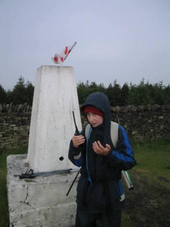 From the parking spot for Fair Snape Fell G/SP-007 we had a terrible time getting lost and confused in the country lanes trying to get across to Longridge Fell G/SP-014, but eventually I found the road sign for Jeffrey Hill, so we were back on track. We parked in the usual pull-in a few yards from the gate. No sooner had we began our ascent than we met Stuart G0MJG and Keith G0OXV completing their own descent. Jimmy made a dash for the summit, while Liam stood still, despite my encouragement for him to get a few yards in while I was chatting. We had a natter about the Pennine Way and HF dipoles, and the weather of course.