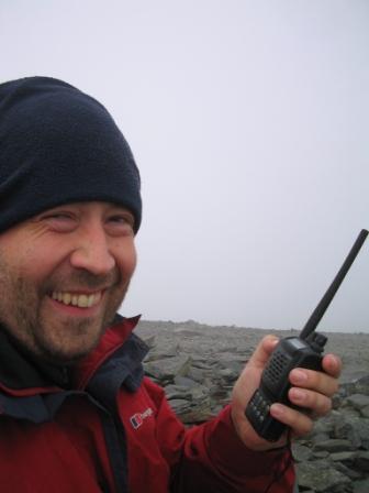 without even feeling it. Good stuff this Kendal Mint Cake, I thought. We were now rewarded with a long horizontal section, bypassing Skiddaw Little Man, before the final approach onto Skiddaw's long summit ridge. We walked the kilometre or so along to the trig point for photos, before returning to the south end of the ridge and the junction with the Allerdale Ramble path. We thought we would have better 2m FM take-off from this end. We sat ourselves down just below a small cairn for a bit of shelter, finished the soup and fired up on 2m FM. 9 contacts were made, included 3-out-of-3 for the day with both G4BLH and GW0DSP. A couple of other stations were heard calling, and I tried walking around a bit to make the contact, but I couldn't make myself heard. Thanks to the following who were worked on 2m FM with 5 watts: