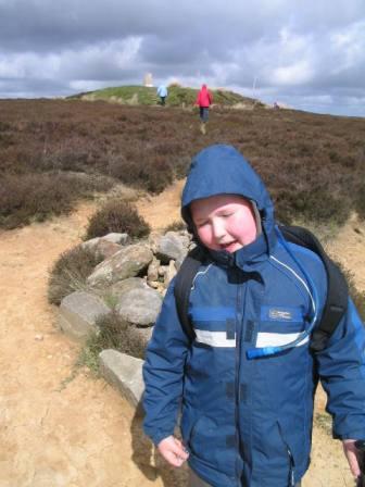 From our parking spot south of Gisborough Moor G/TW-003, we drove around to Clay Bank car park, the parking spot between Urra Moor-Round Hill G/TW-001 and Cringle Moor-Drake Howe G/TW-002. It is a fair old undulating way to TW-002 from here, but it is a good access point for TW-001, albeit a stiff climb, particularly at the start. In the car park, we met Geoff G0VAP who was out and about on his North Yorks Moors ranger duties. He mentioned that he had met Steve G1INK on summits in this area in the past, and made a promise to work us when we reached the summit ourselves. A short walk up the road towards Chop Gate was followed by a left turn into the field and the Cleveland Way national trail path. Shortly, we were climbing the steep stone steps up to the edge of the wide Urra Moor plateau. The hard work was out of the way, but we now had a 2km walk across the gently ascending moor to the summit of Round Hill. Along the way, we met some of the Coast 2 Coast walkers that had stayed at Osmotherley Youth Hostel with us. Yet again, it was very cold and very windy at the summit, and shelter was difficult to find. We did as best as we could by sitting down in the lee side of the summit, about 15 yards from the trig point.