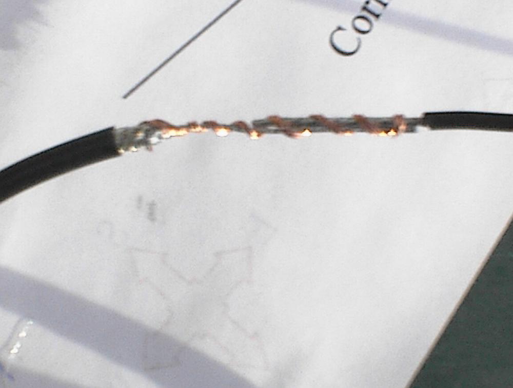 The first HF antenna I put up was a coaxial dipole, the concept was developed by MIT. Electrically it is very different to a conventional dipole; it incorporates a balun and is almost like having two quarter-wave dipoles connected side by side. Also, unlike a dipole, you have 0 ohms between the core and the braid because they are connected together over the centre 50% of the antenna. I suspect that this is all about balancing but have yet to understand it properly.