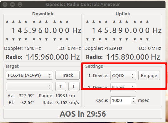 Back in GPredict, select the target satellite in the drop-down menu and click Track
