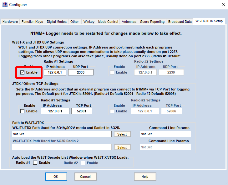 47. First thing we need to worry about is under "WSJT-X and JTDX UDP Settings". We need to enable the UDP port.