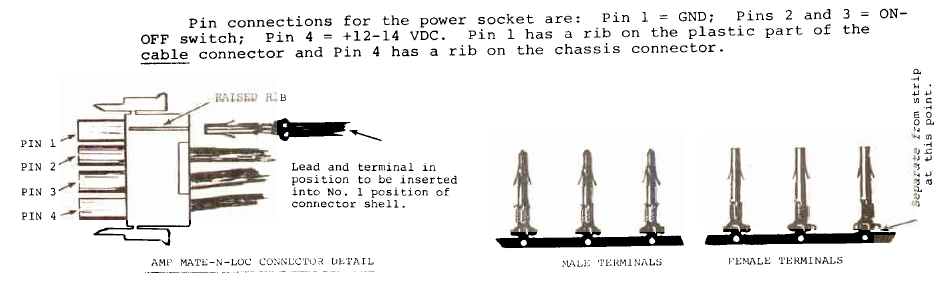 Spare 4 Pin AMP MATE-N-LOC DC Plug / Connector for transceiver Models 562, 563, 564, 585, and 586.
