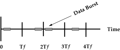 Figure 3. Time Hopping Spread Spectrum. Each burst consists of k bits of data and the exact time each burst is transmitted is determined by a PN sequence.