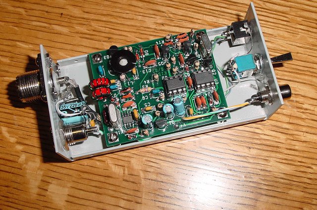 From: "ak0b" <ak0b@...> To: <rod@...> Subject: Rock Mite pics attached Date: Monday, September 02, 2002 8:26 AM Rod this is my Rock Mite in a LMB CR-425 case. As you can see I made a few mods. HI I moved C111 to the bottom of the board to allow room for a heat sink on Q6. I added more filtering to the power input line for better operation with weak batteries. In addition to the caps, I have an RF bead on the power in line that is hidden under the PCB. I changed C6 to 150 pf and C7 to 22 uf in reduce the audio bandwidth of U2. After all we only want to hear 700 hz. HI I used AADE filter program and changed the output PI network for a match of 80 ohms at collector of Q6 and antenna of 52 ohms. Not sure if it helps anything but thought Q6 might run cooler. Not verified. I used toroids in place of L2 and L3. I did make a mistake - I used a spring loaded switch and should have used a push button. Rock Mite puts out 800 mW with 13.8 vdc and one can hold your finger on Q6. de Stan Ak0b