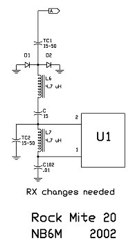 Here is the schematic of changes to the 20 Meter Rock Mite�s receiver input: