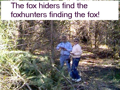 As Bob and I hiked up the trail to the fox, we heard the morse code message from the fox, but we didn't have our radios on! We both thought we were just imagining the sound after hearing it for three hours, when we spotted Judy and Fred very close to our fox. We snuck up on them just in time to see them find the fox.