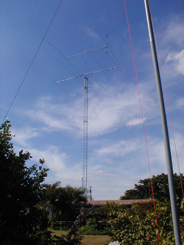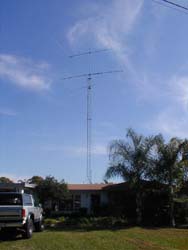 The pictures above show K1PT's tower, which is 60ft of Rohn 45. Installed is a C31XR @ 60ft and 402CD @ 70ft. attached to the cross arms are the 80m inverted vee and 160m inverted L.