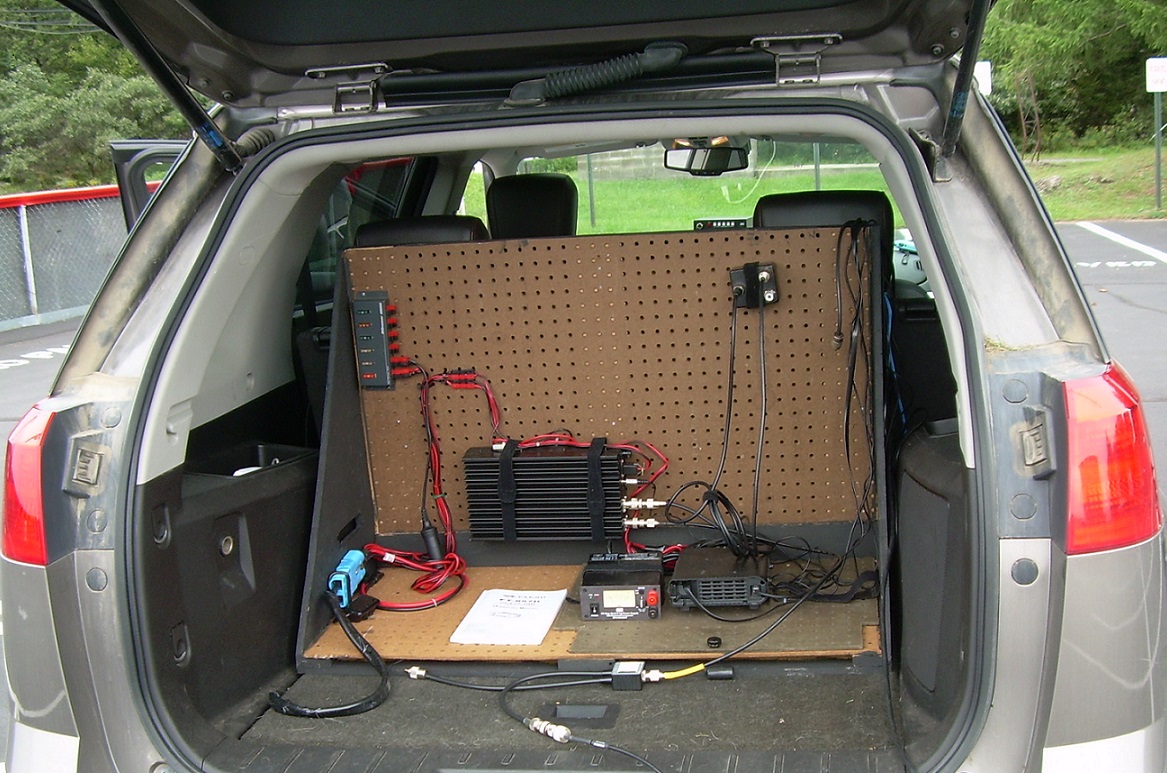 We did equipment testing in August to see whether the 432 vehicle would receive interference from the other bands. On 6m it did not, but on the other 2 bands it received S5 interference. We temporarily put a borrowed bandpass filter on the 432 station and the interference disappeared. The bandpass filter wasn't designed to handle the transmit power that we would be using, so on contest weekend we used the 70 cm side of a diplexer as a filter and it helped reduce the received interference somewhat despite a wide bandpass. We also tried parking the second vehicle as far as possible from the van.