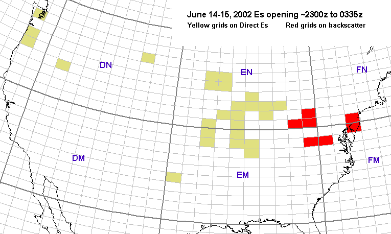 | Es scatter can also provide a means of working those odd-distance grids during particularly strong openings. As with that on F2, the stations work each other via scatter reflected signals while beaming into the hotspot. Though Es scatter is generally weaker and rarer than that of F2 backscatter, it can still an effective and fun way to work new grids. It is sometimes hollow & distant-sounding with a multipath echo, and rarely, marked with a bit of flutter.