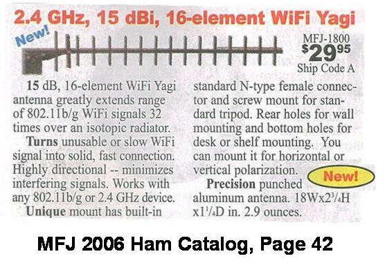 The K5GNA downconverter with corner reflector is advertised as having 12 dBi gain; however, I have difficulty hearing the downlink when the satellite is below eight degrees elevation. I was looking through the latest MFJ catalog when I noticed a 2.4 GHz 16-element WiFi Yagi with an advertised gain of 15 dBi, and decided to order one and see how it compared to the K5GNA dipole and corner reflector.