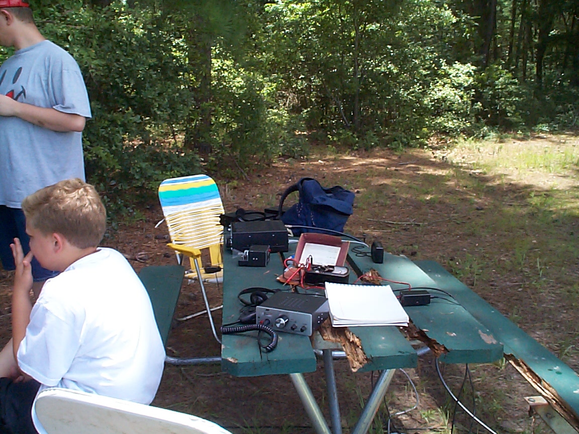 Nathan (KC5DEF) launching a string into the trees to hoist the 20 meter dipole.