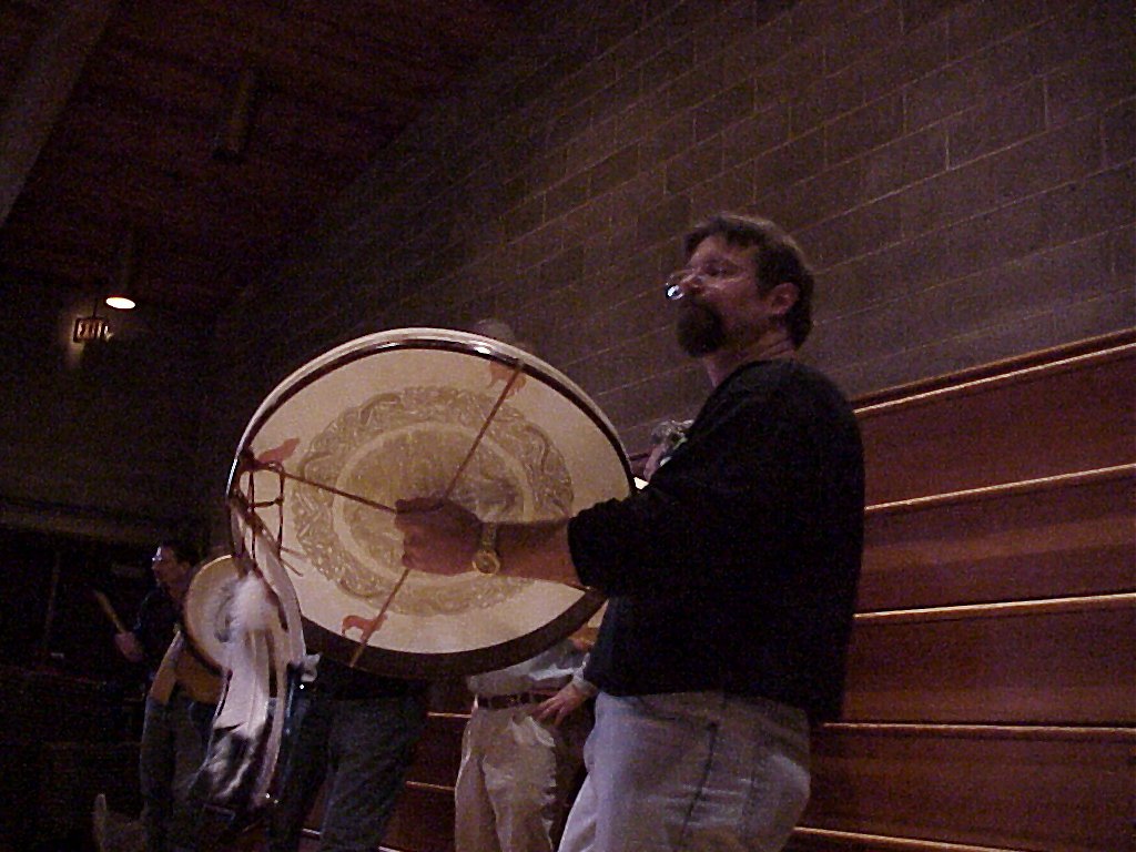Whether outside in the woods, or (as in this case) inside a school gymnasium, the energy of a hundred men drumming together will raise your spirits and give you a powerful sense of connectedness. I find drumming spiritual without being religious, a ritual without dogma. It requires no training, demands no practice, and since the rhythms are inside you, as long as your heart beats you cannot do it wrong.