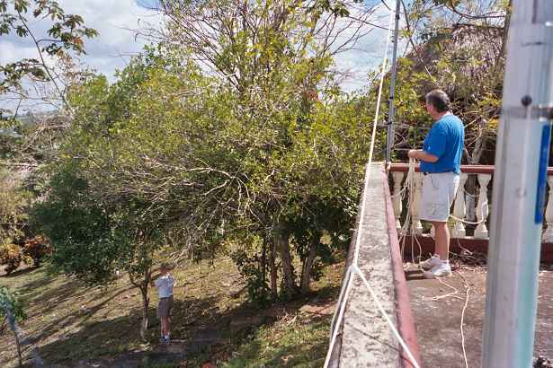 up the antennas. You can see the deck railing to the right of the cabañas.