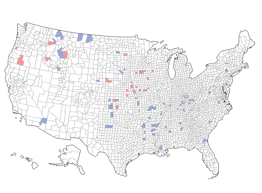 The map below shows the counties that I still need. To see a map of a particular state, click on the state in the U.S. map below, or click on the state abbreviation below.