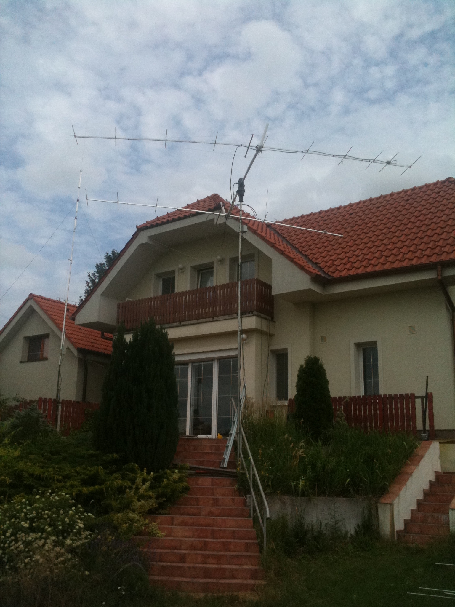 Here we are back in Slovakia, with an ambitious plan to put up an HF vertical, a 6 and 4 meter duobander, and a pair of 10 element 2 meter yagis with az-el rotator.