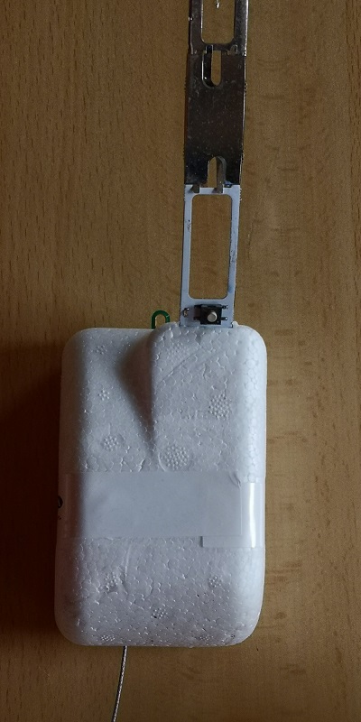 Am Sensorstreifen befindet sich nahe der Hauptplatine ein Taster mit dem die Sonde aus und eingeschaltet wird.