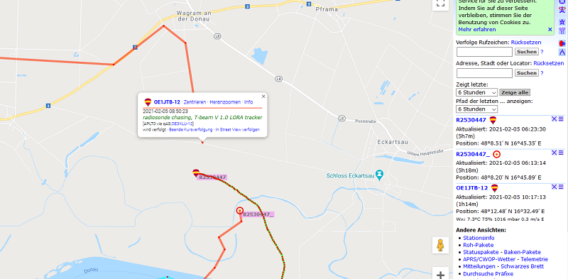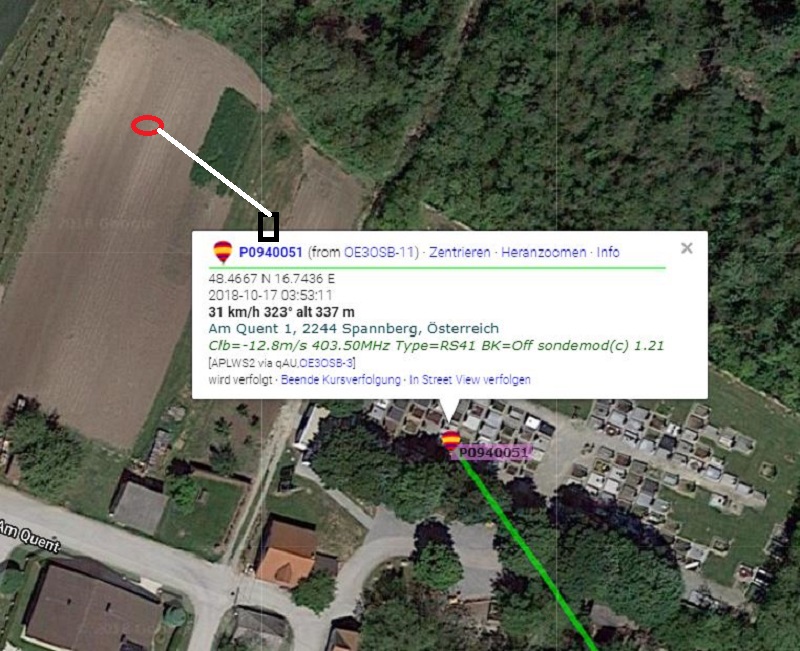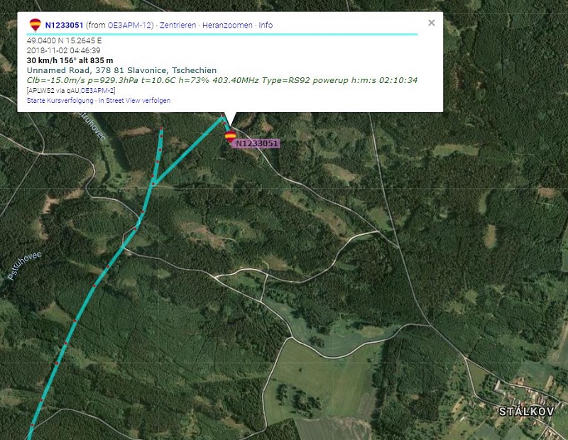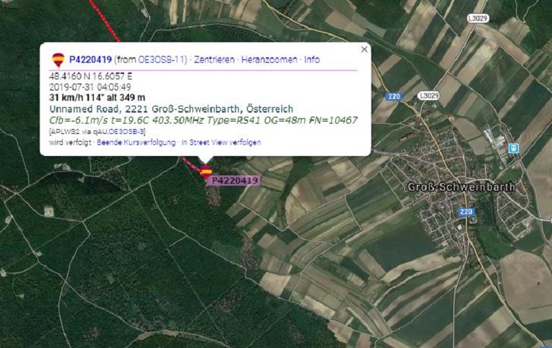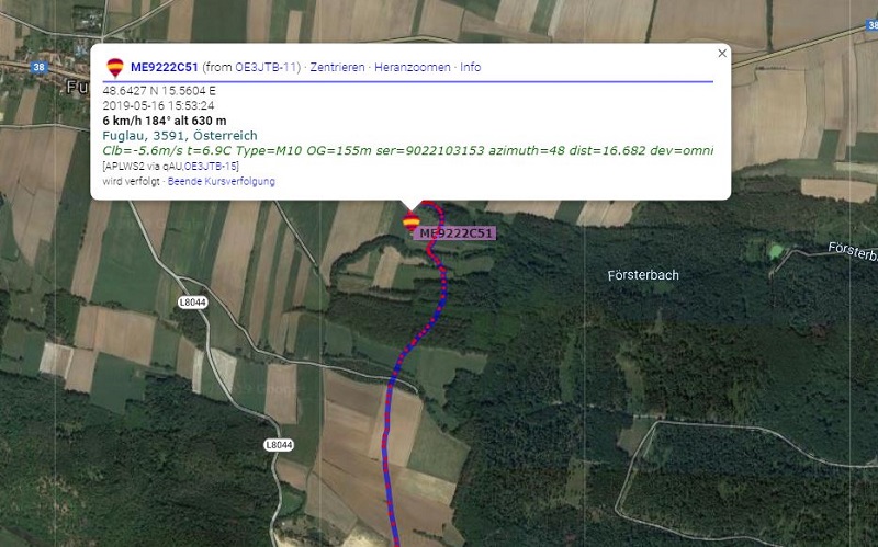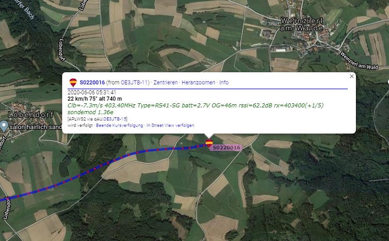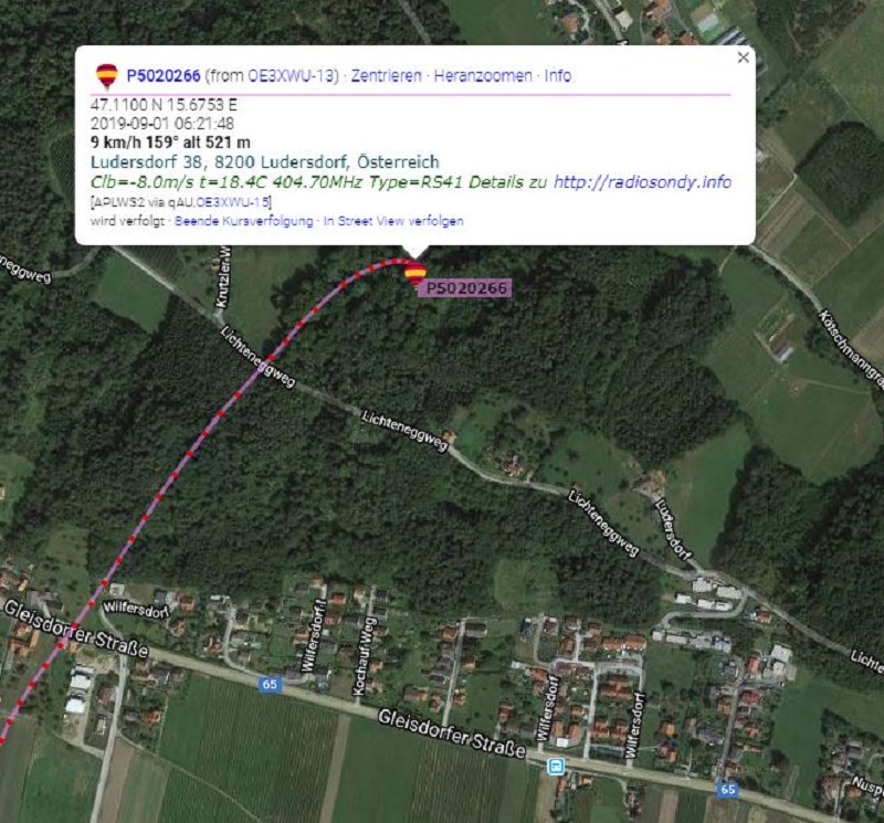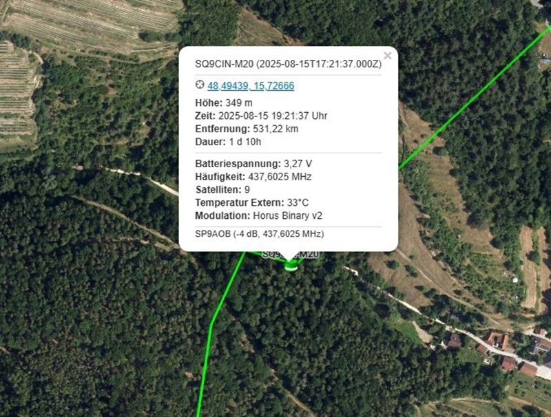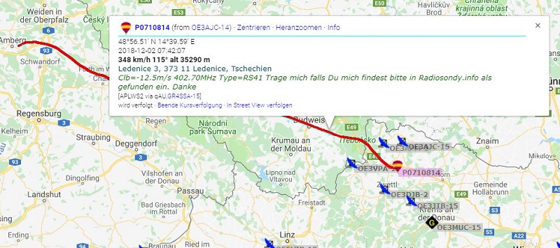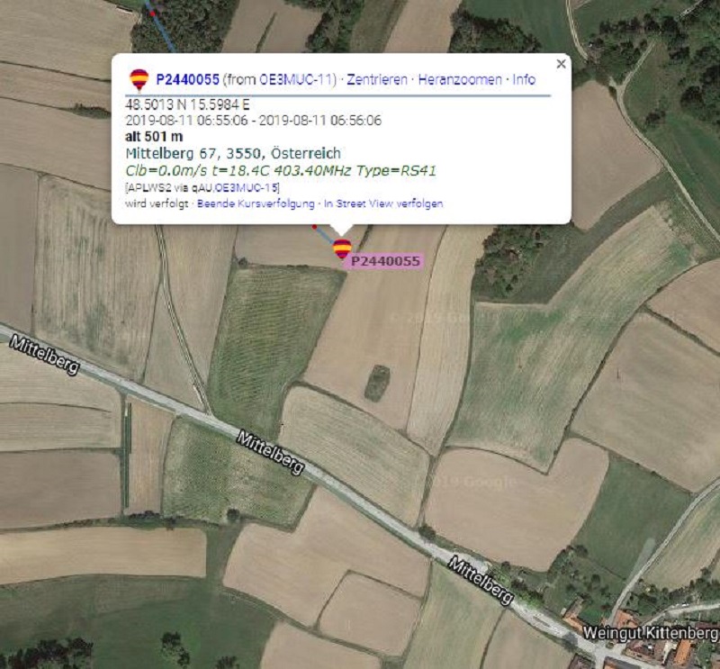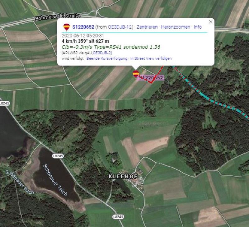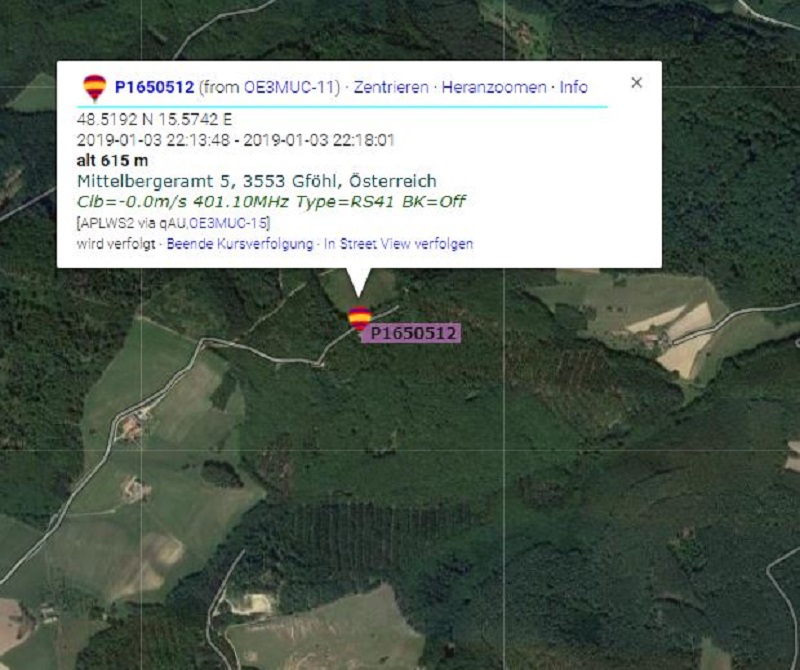 Ich bat dann noch Fritz OE1FFS die Sonde als gefunden in den Meldungen einzutragen,