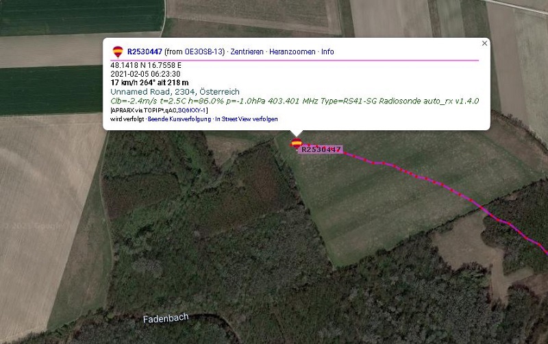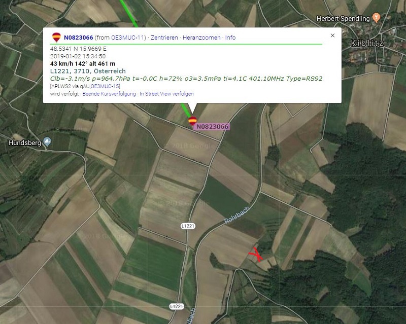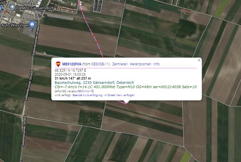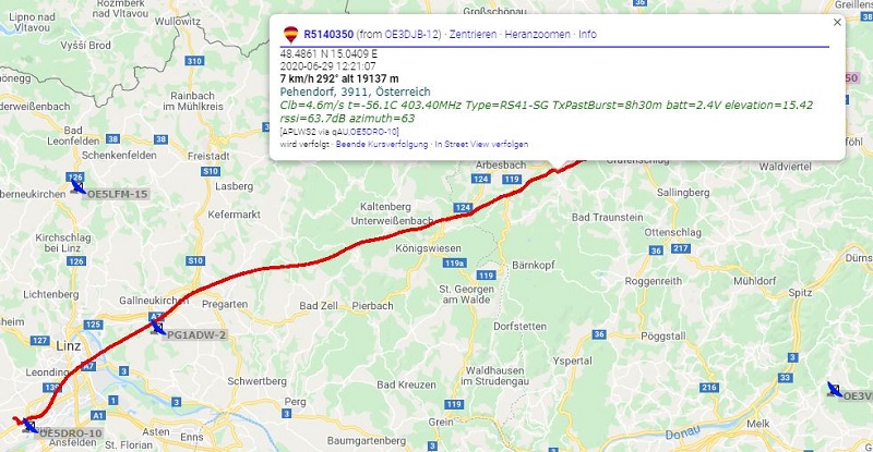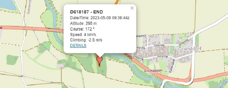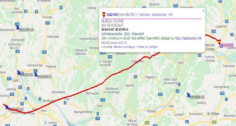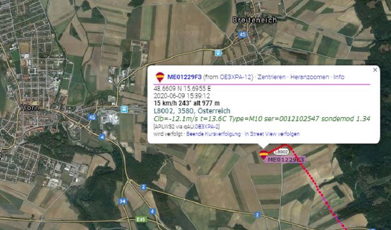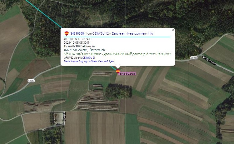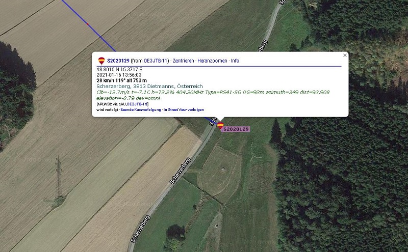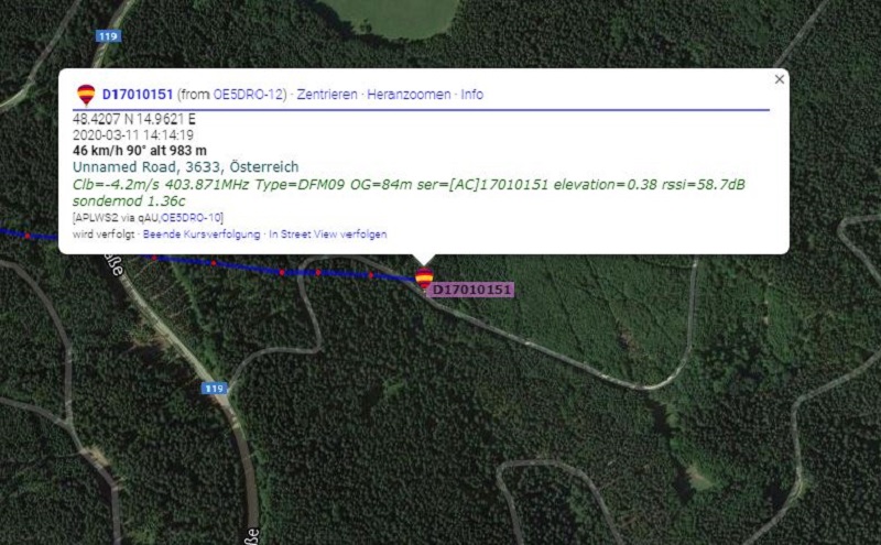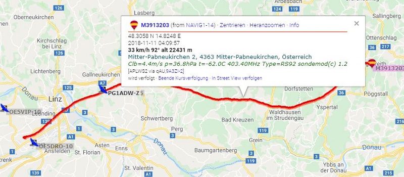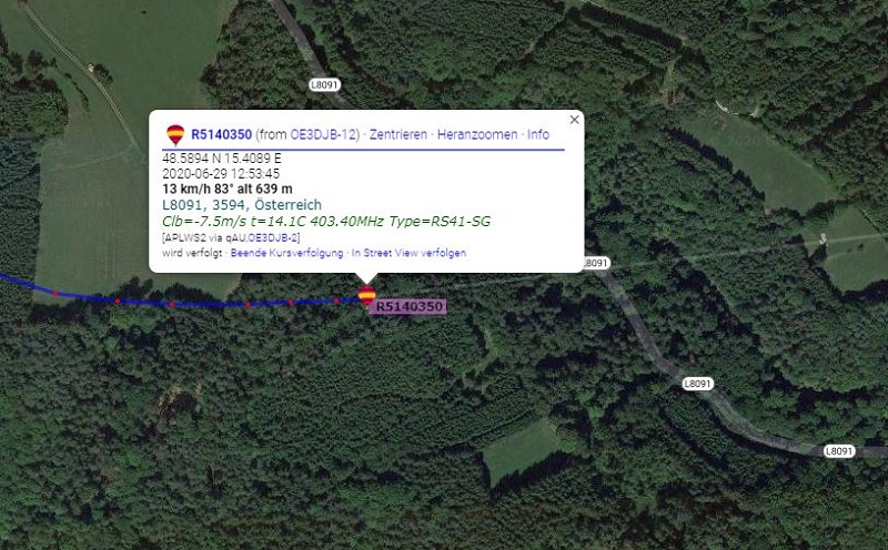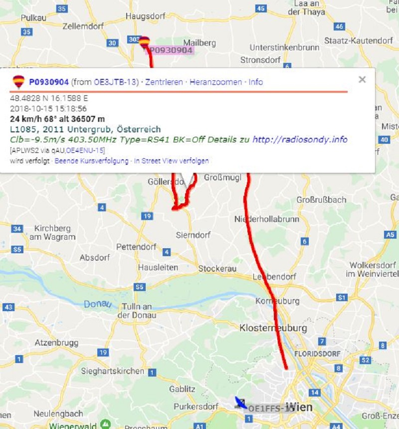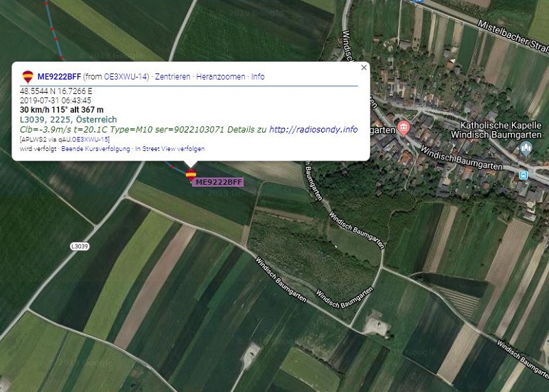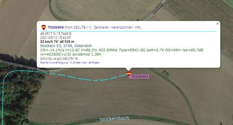 Ich bat dann noch Fritz OE1FFS die Sonde als gefunden in den Meldungen einzutragen,