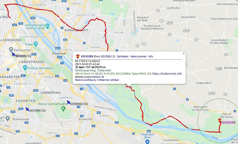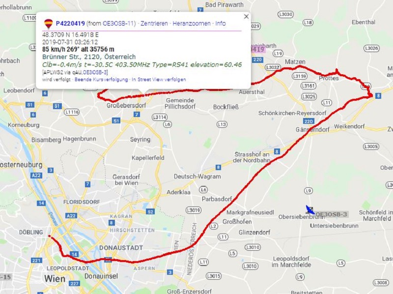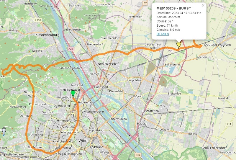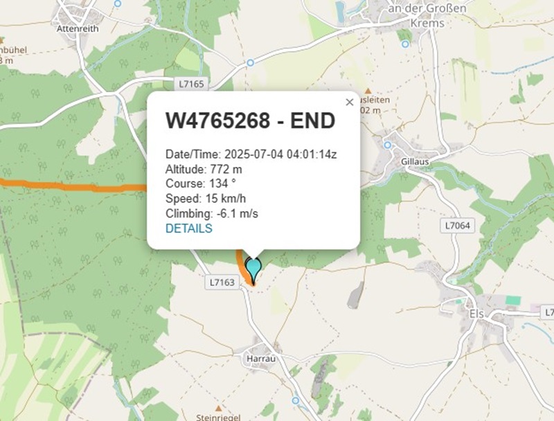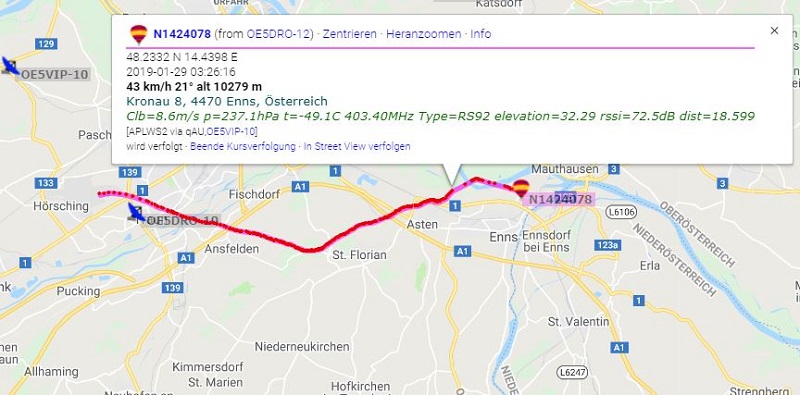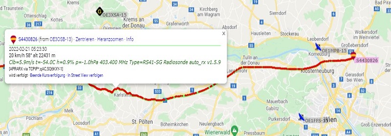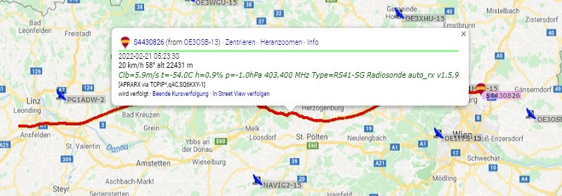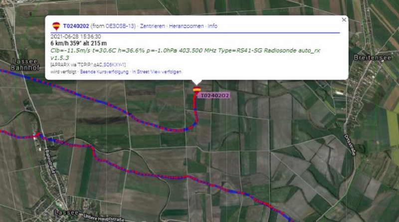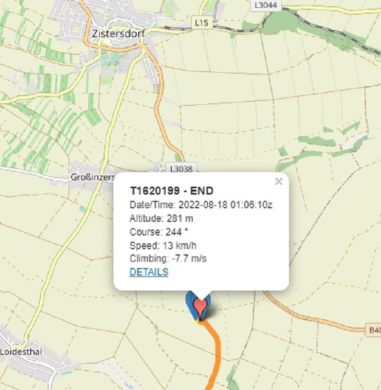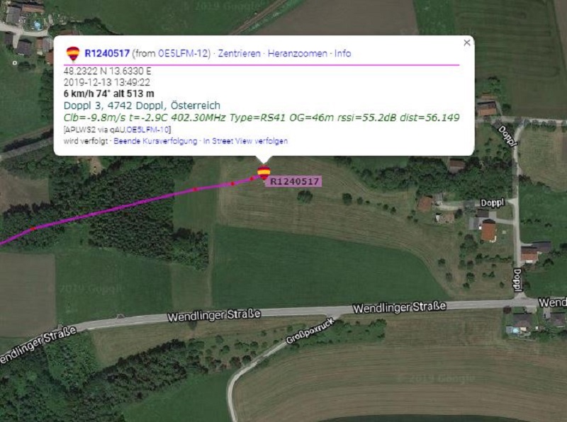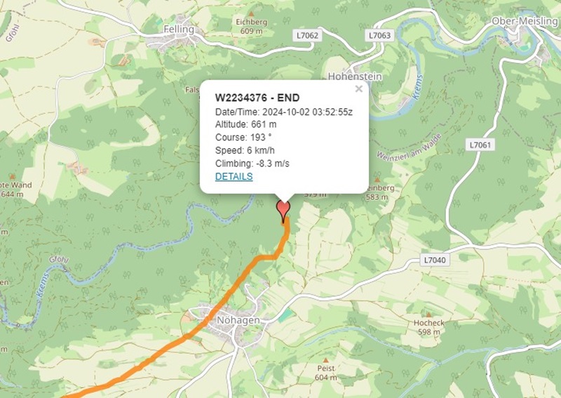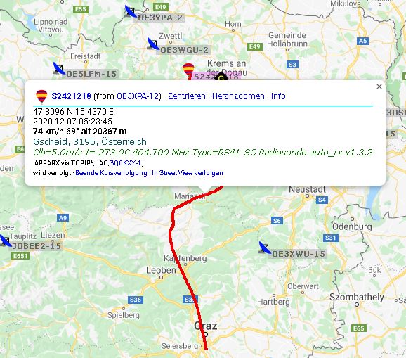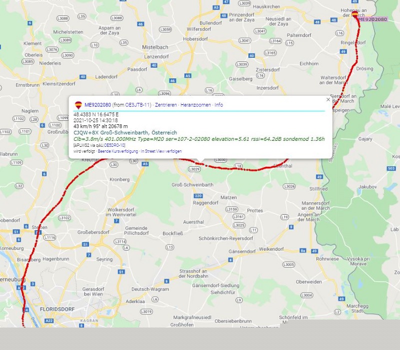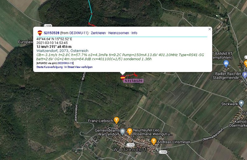 Ich bat dann noch Fritz OE1FFS die Sonde als gefunden in den Meldungen einzutragen,