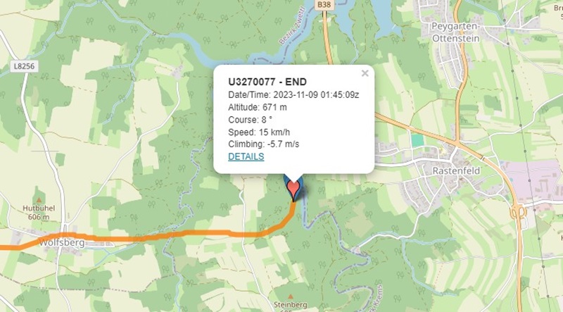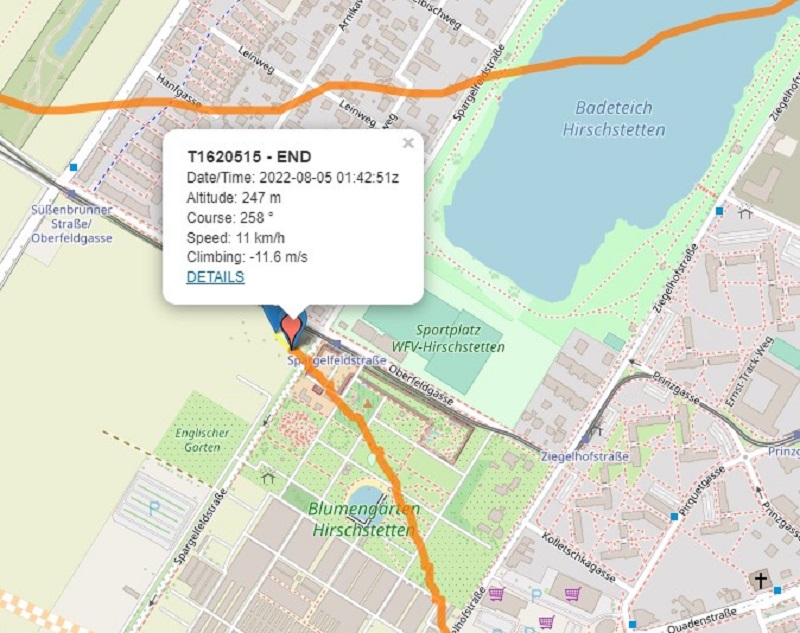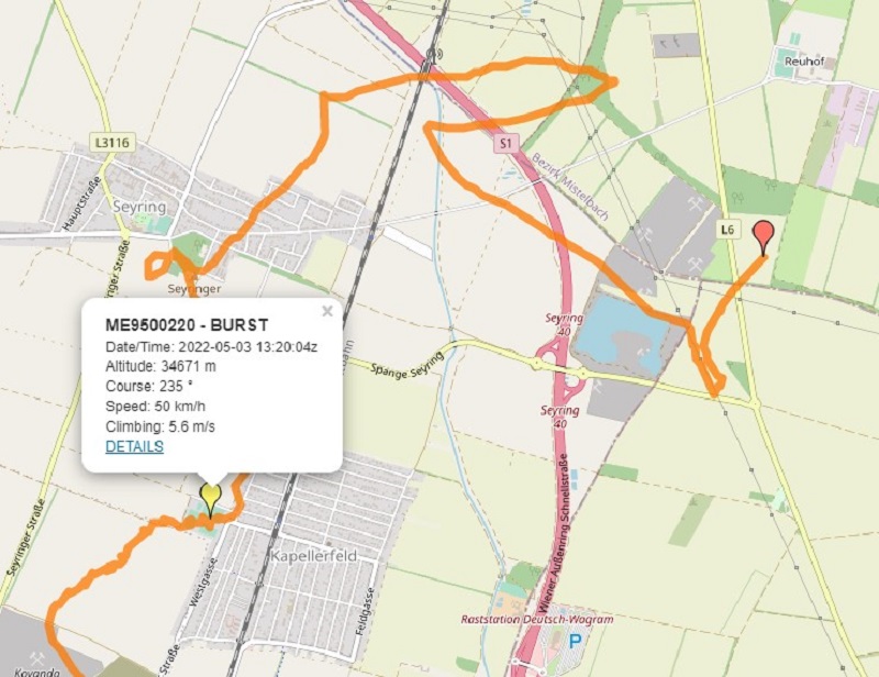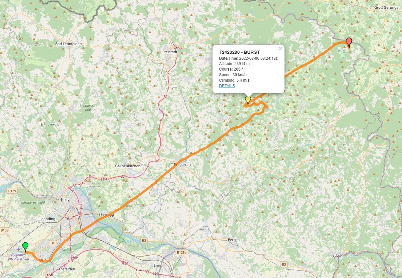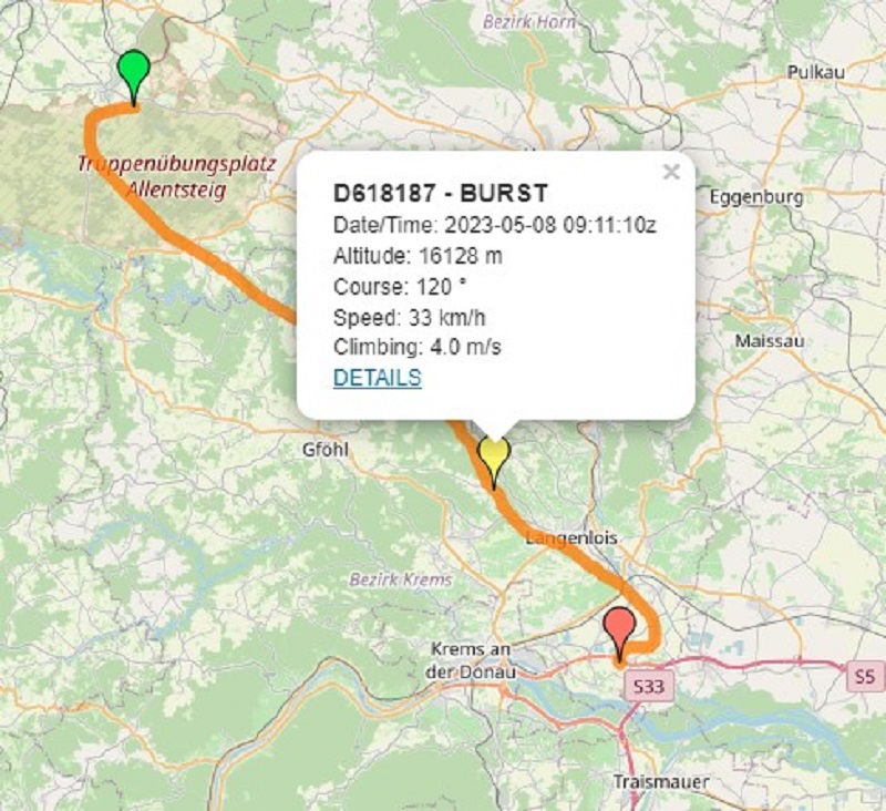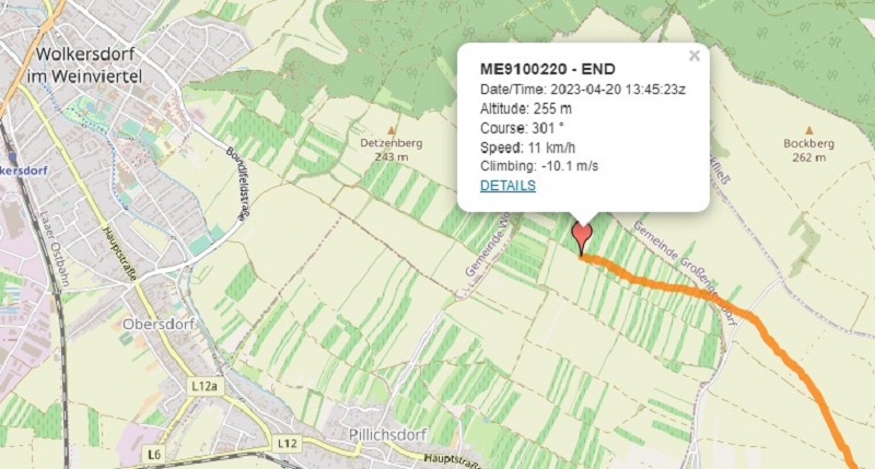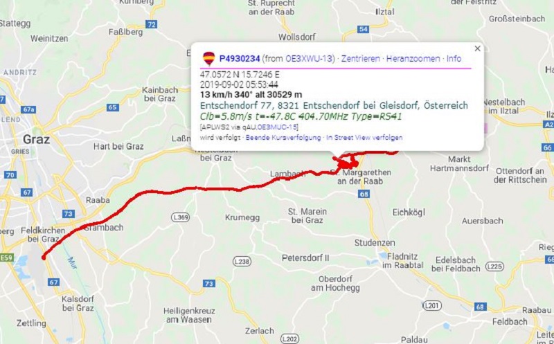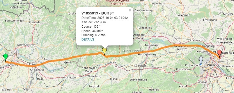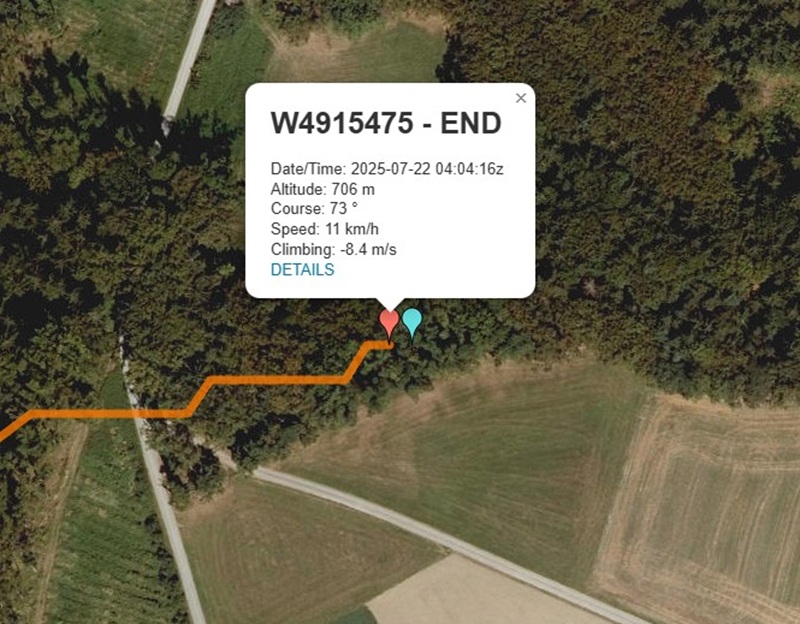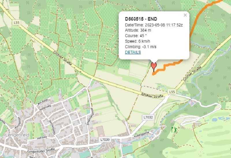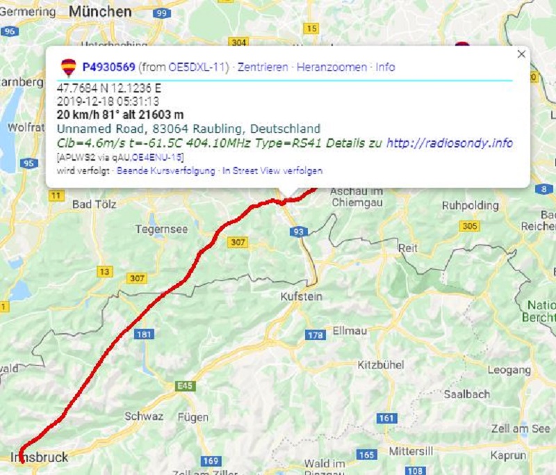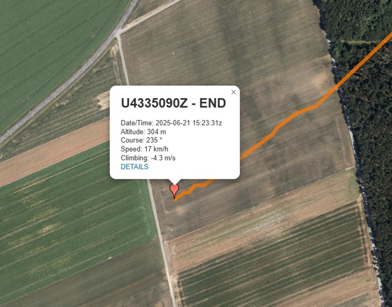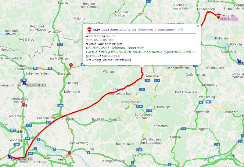 Ich bat dann noch Fritz OE1FFS die Sonde als gefunden in den Meldungen einzutragen,