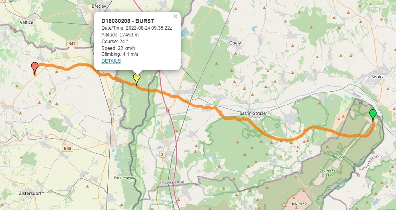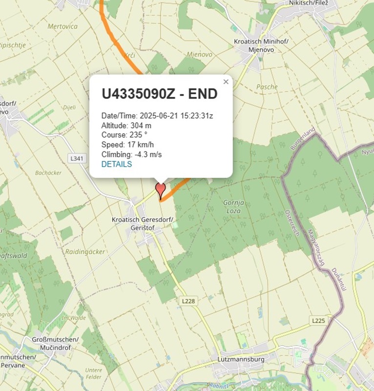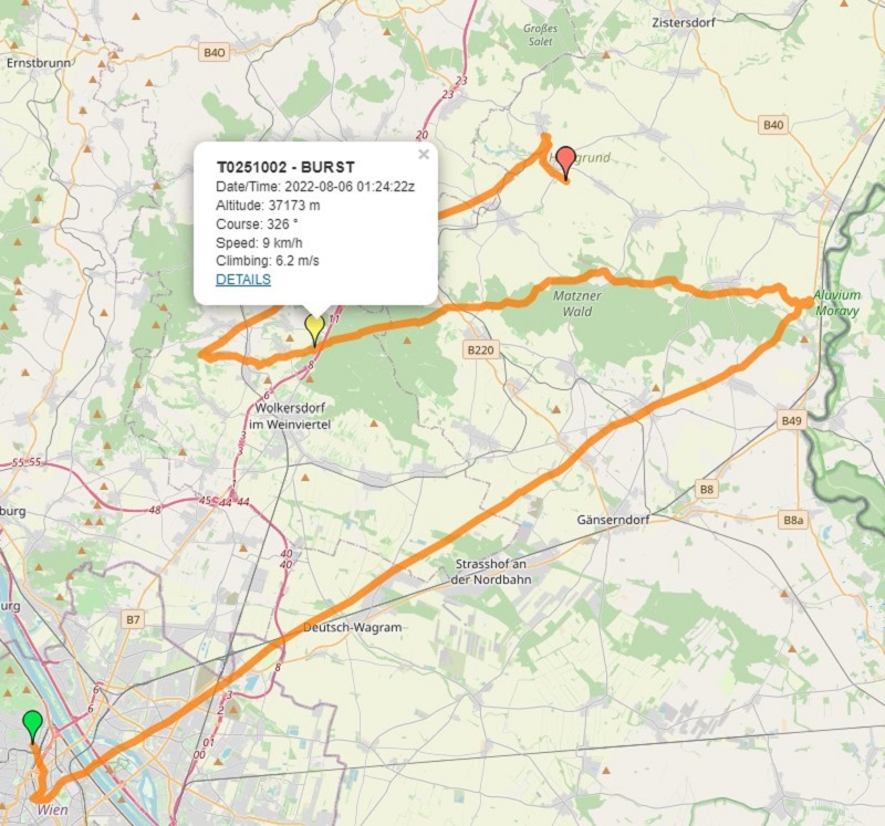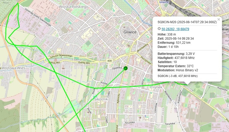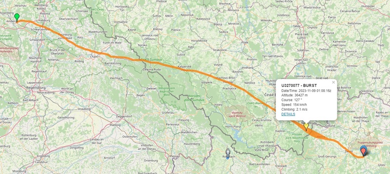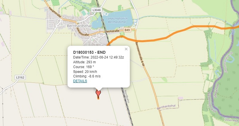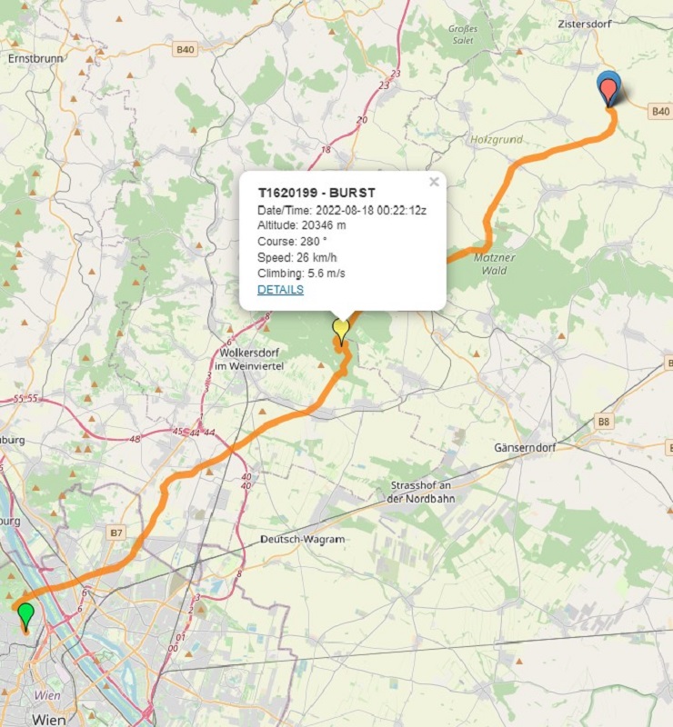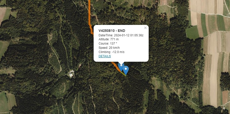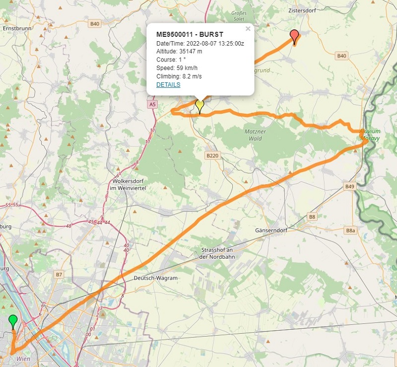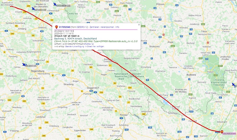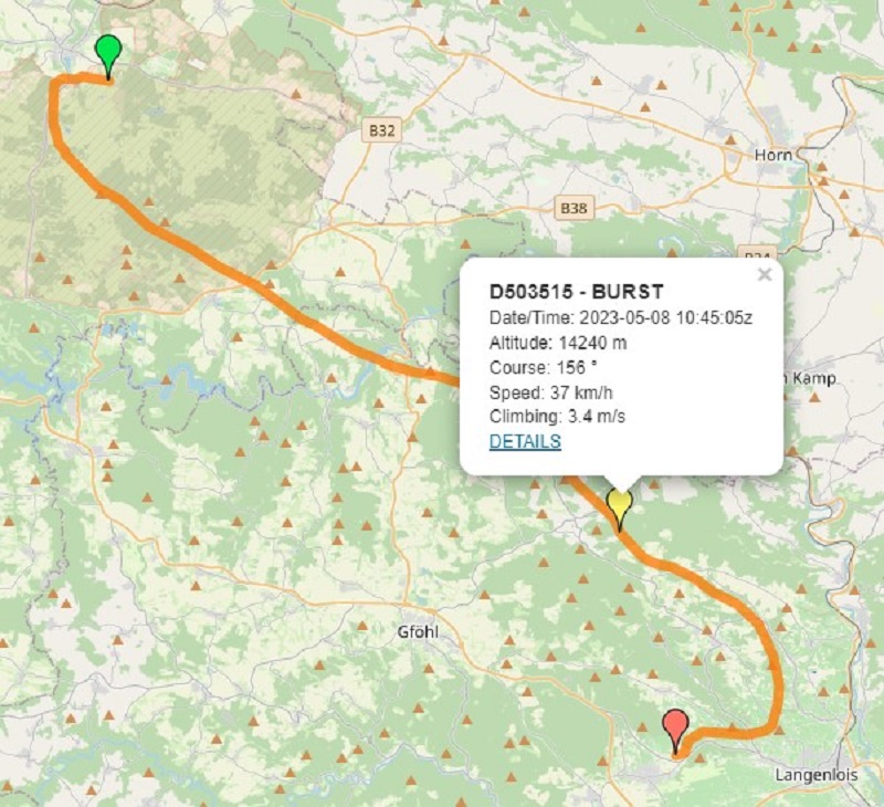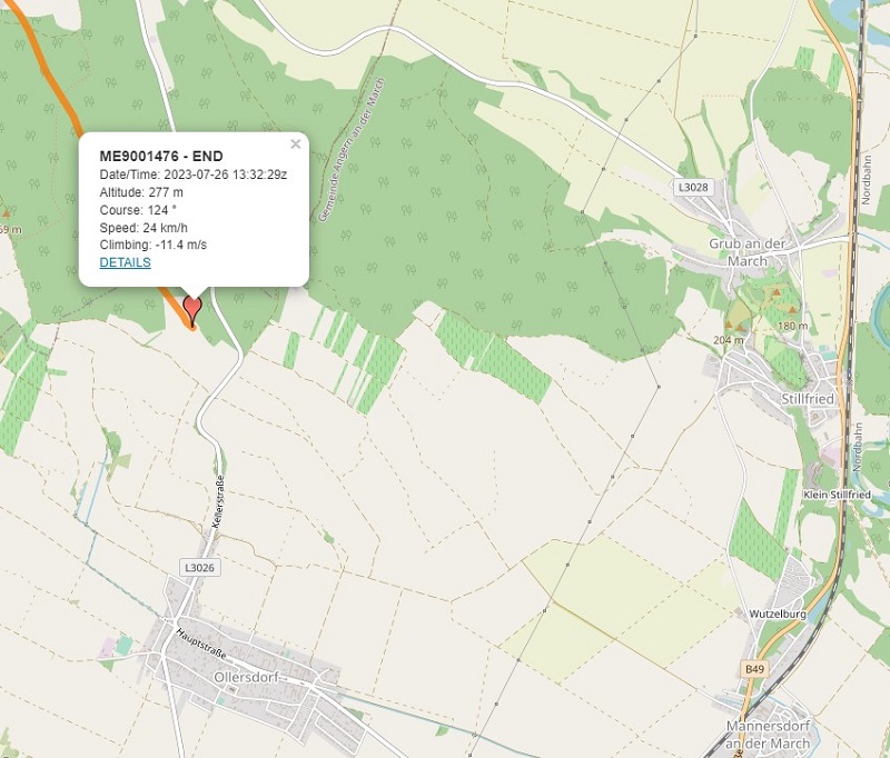 Ich bat dann noch Fritz OE1FFS die Sonde als gefunden in den Meldungen einzutragen,