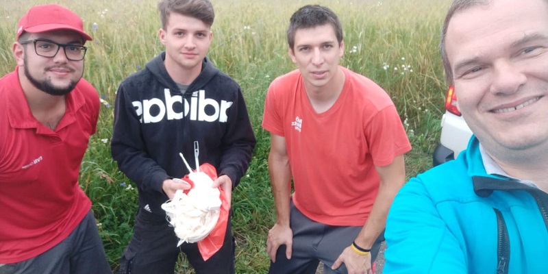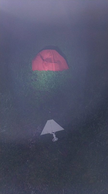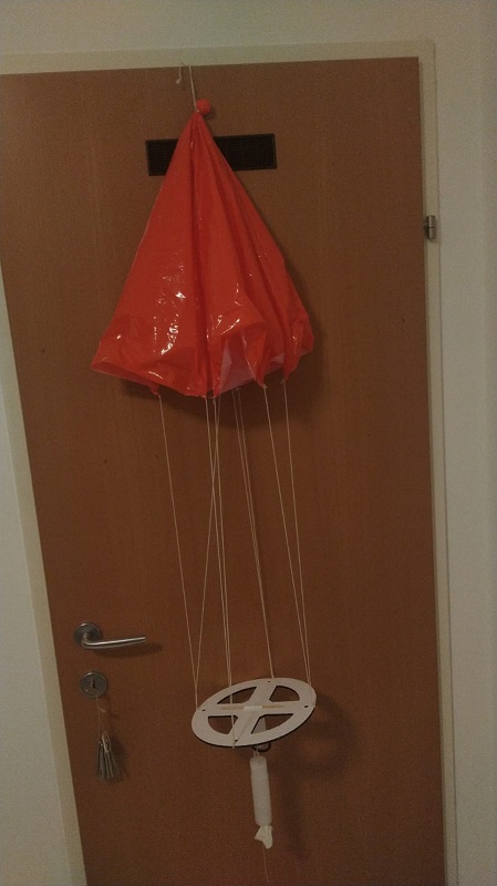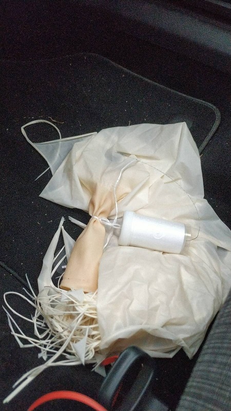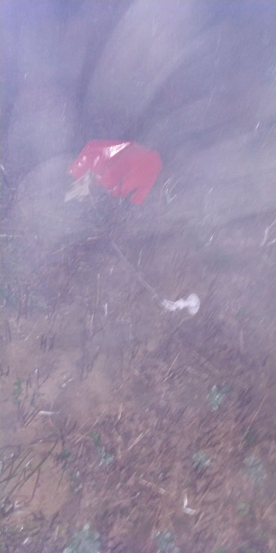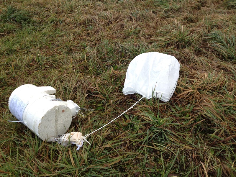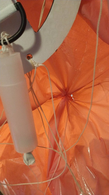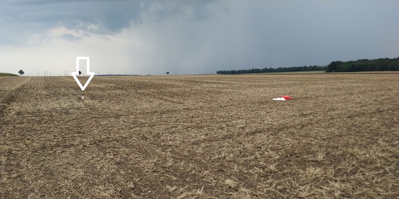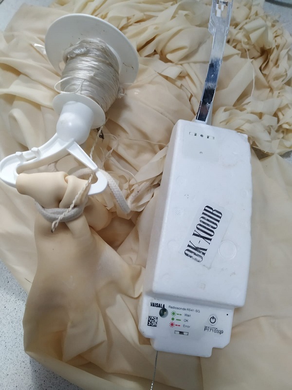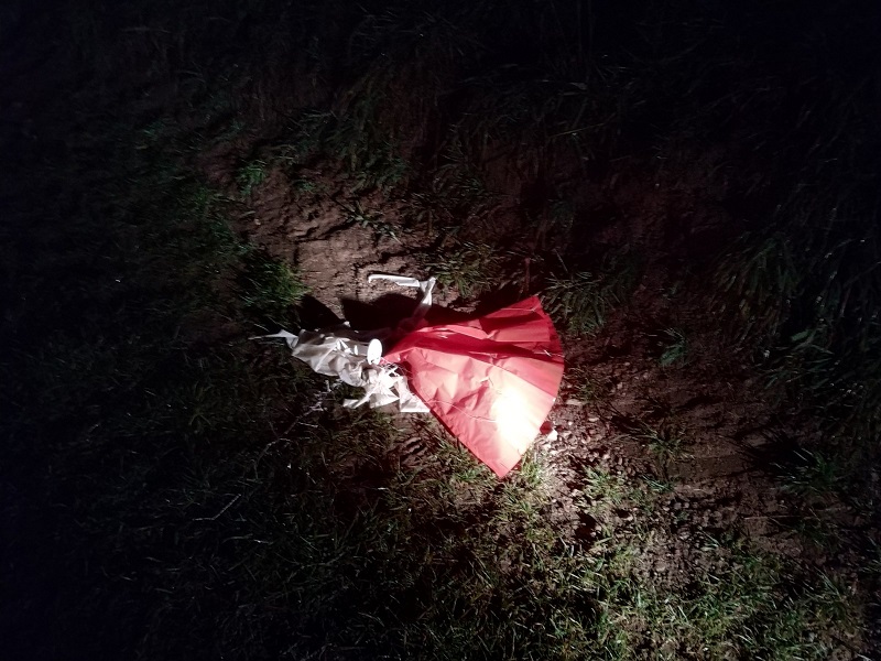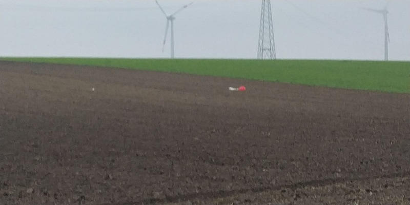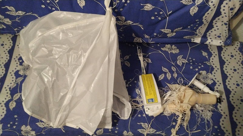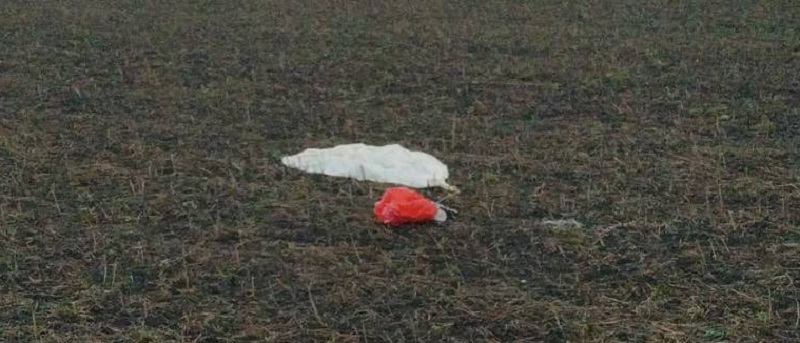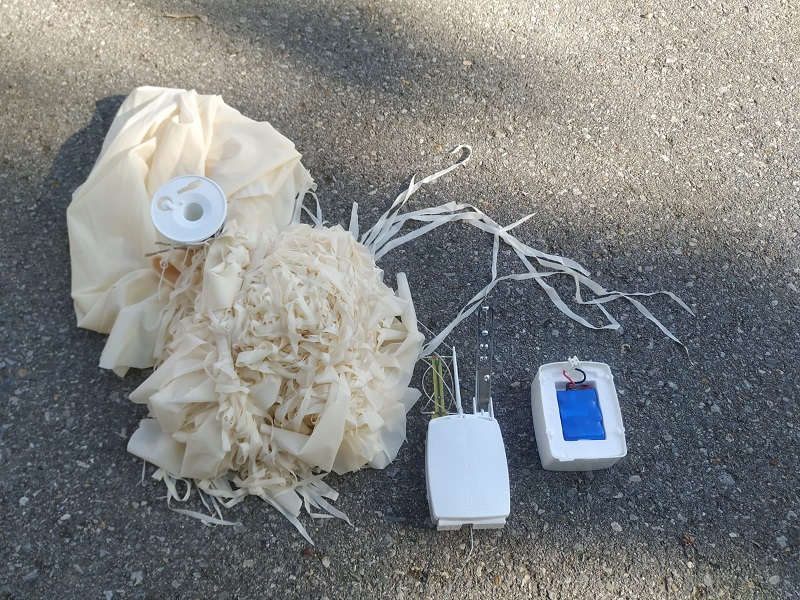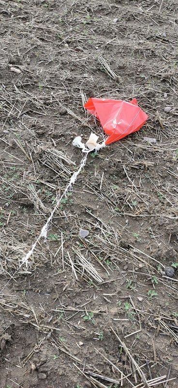 Der große Ballonrest kam als Erster, gefolgt vom Fallschirm, der zwar ganz offen war,