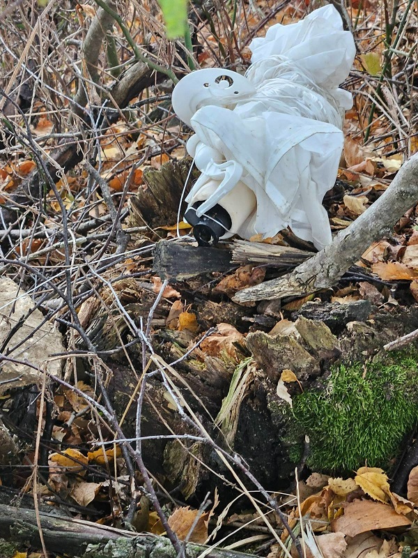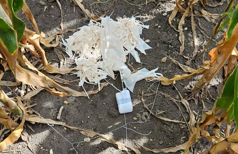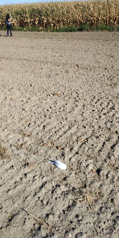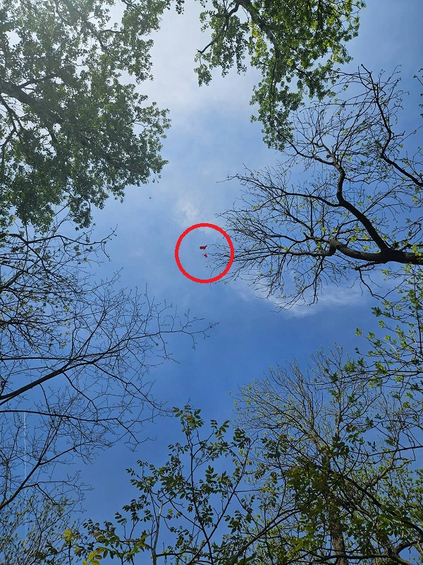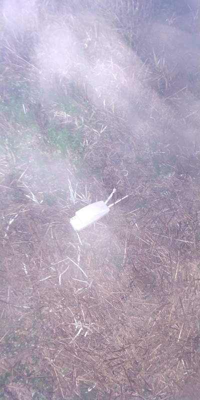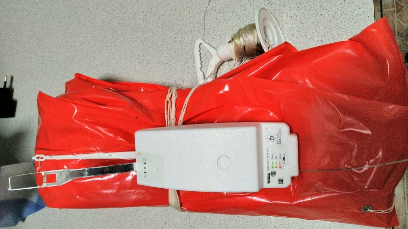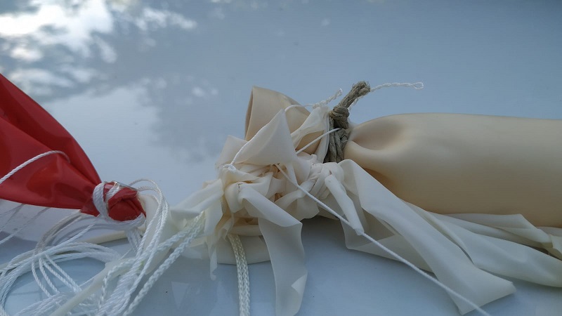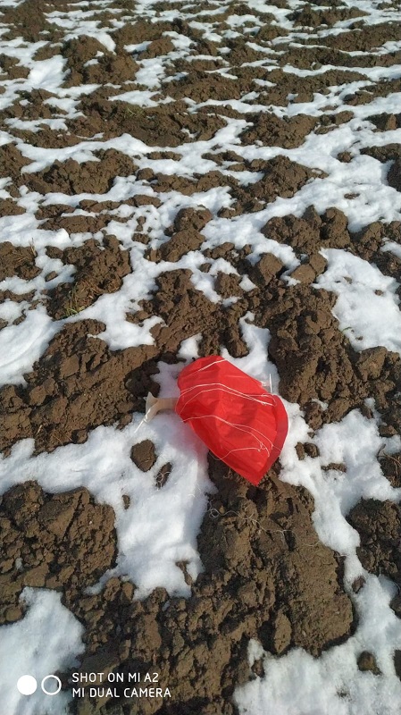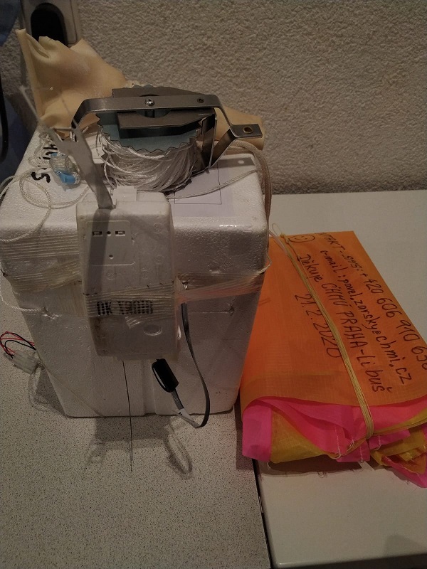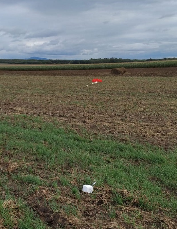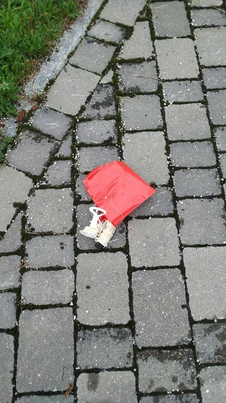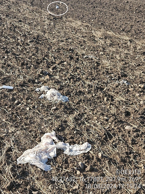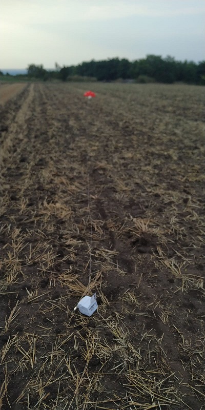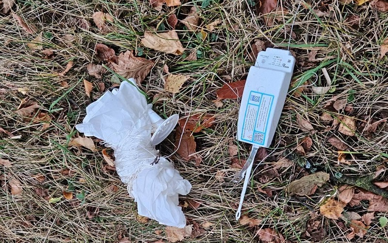 Der große Ballonrest kam als Erster, gefolgt vom Fallschirm, der zwar ganz offen war,