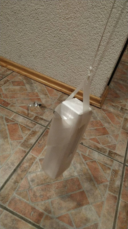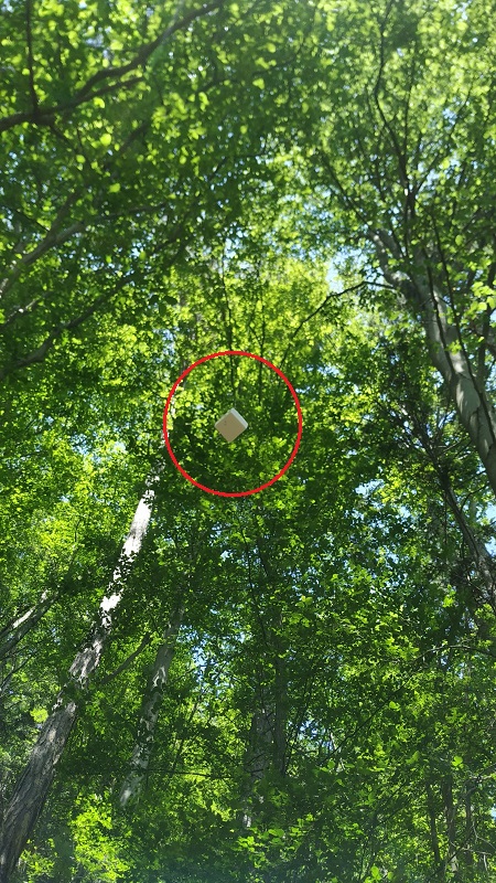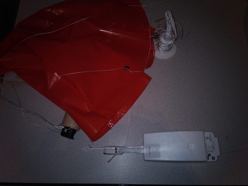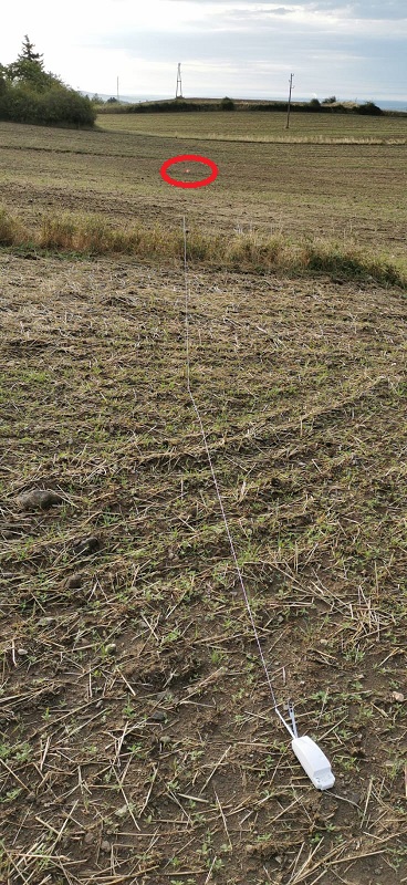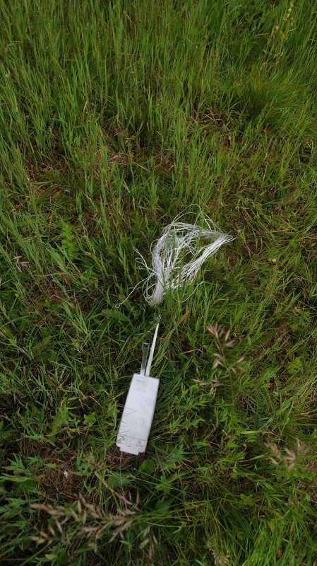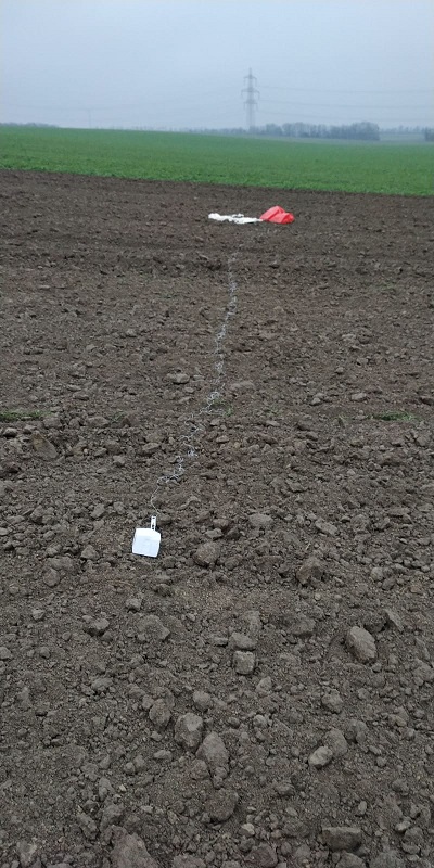 aber vom Ballon nach unten gezogen wurde und hinten nach als oberster Teil dann die Sonde,